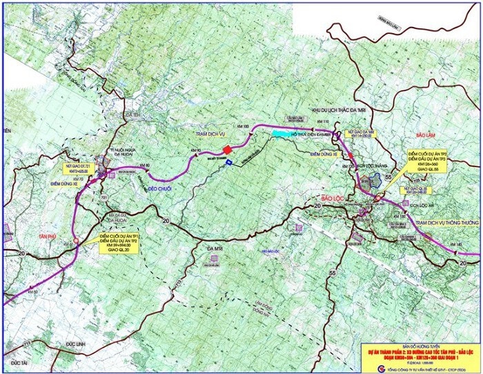 Hướng tuyến cao tốc Tân Phú - Bảo Lộc. (Ảnh: Thành ủy Bảo Lộc).