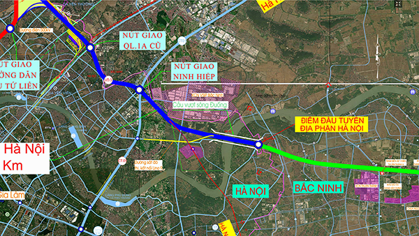 Tuyến đường kết nối sân bay Gia Bình với Hà Nội (đoạn qua địa bàn TP Hà Nội) có tổng chiều dài hơn 10 km, đi qua khu vực huyện Gia Lâm cũ. Điểm nhấn quan trọng nhất của toàn tuyến là cây cầu vượt sông Đuống với chiều dài khoảng 1,9 km, nối liền xã Phù Đổng và xã Thuận An.