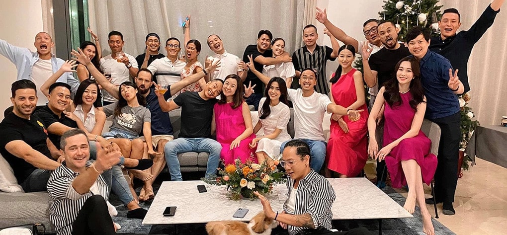 Justin Cohen (thứ hai từ ngoài vào, bên trái) xuất hiện trong một bữa tiệc có mặt vợ chồng hoa hậu Đặng Thu Thảo - Nguyễn Trung Tín, vợ chồng Phillip Nguyễn - Linh Rin, Louis Nguyễn - Tăng Thanh Hà...