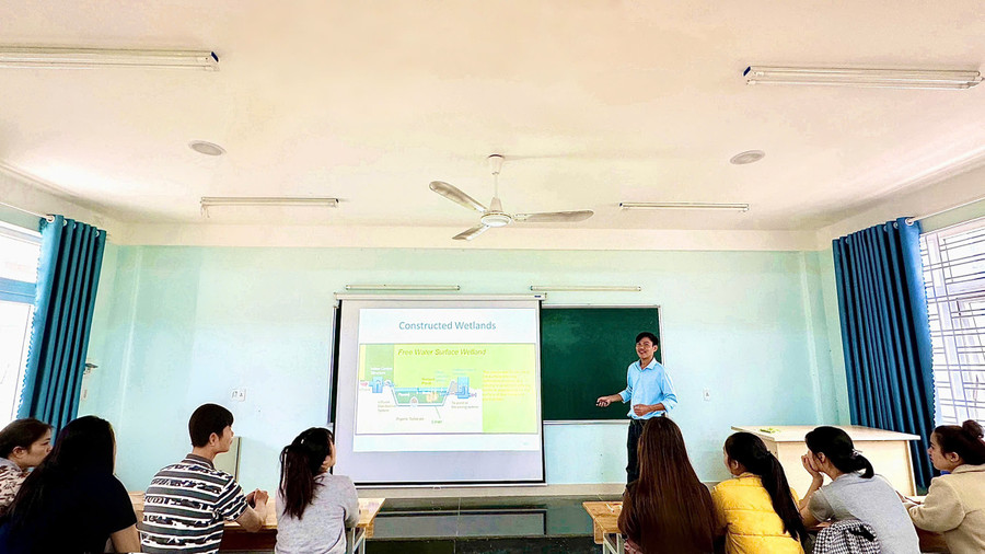 Tiến sĩ Nguyễn Minh Kỳ truyền cảm hứng đam mê ở lĩnh vực khoa học môi trường cho sinh viên qua từng giờ giảng. Ảnh: M.C