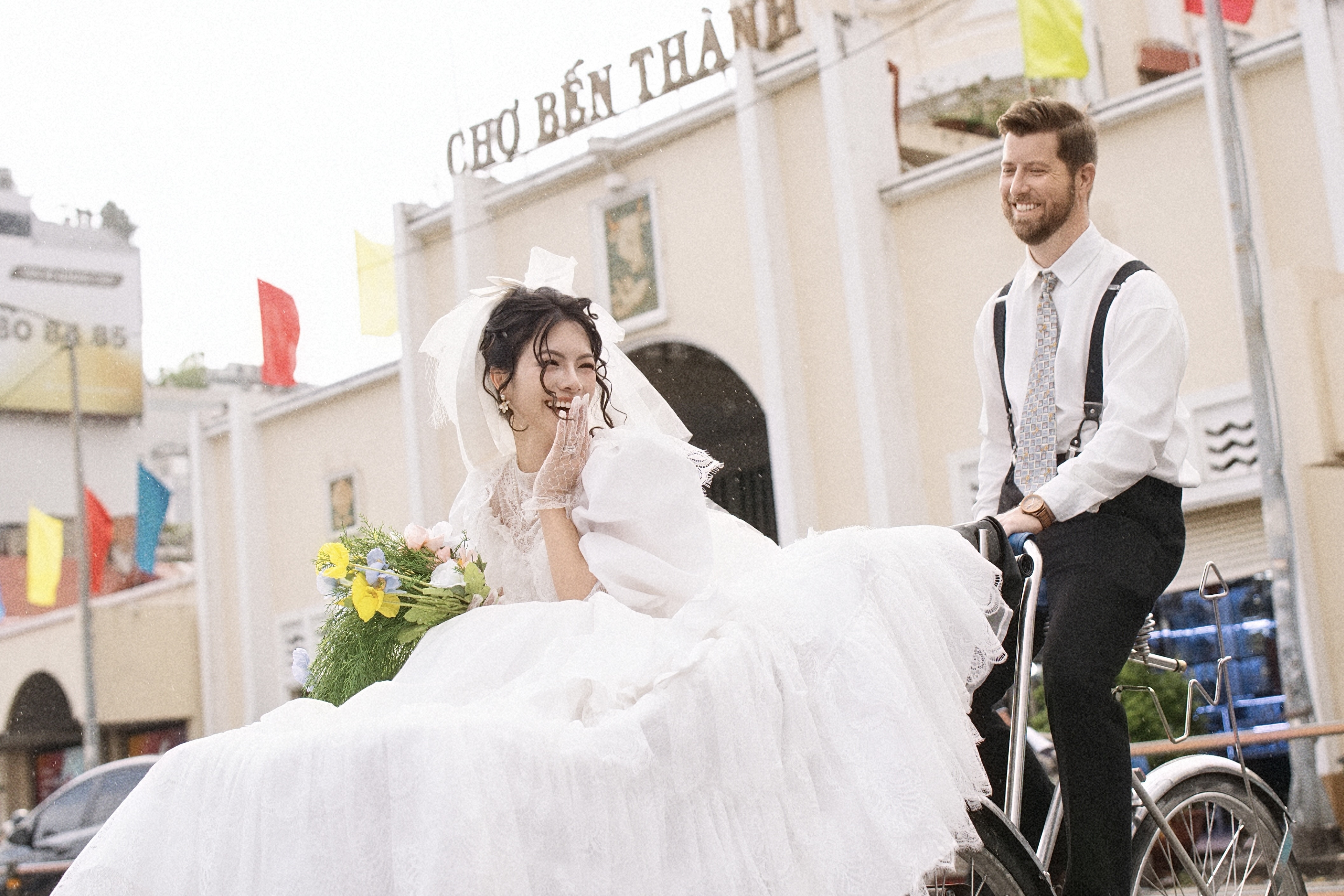 Kendra và Mark chụp ảnh kỷ niệm ngày cưới ở Việt Nam.
