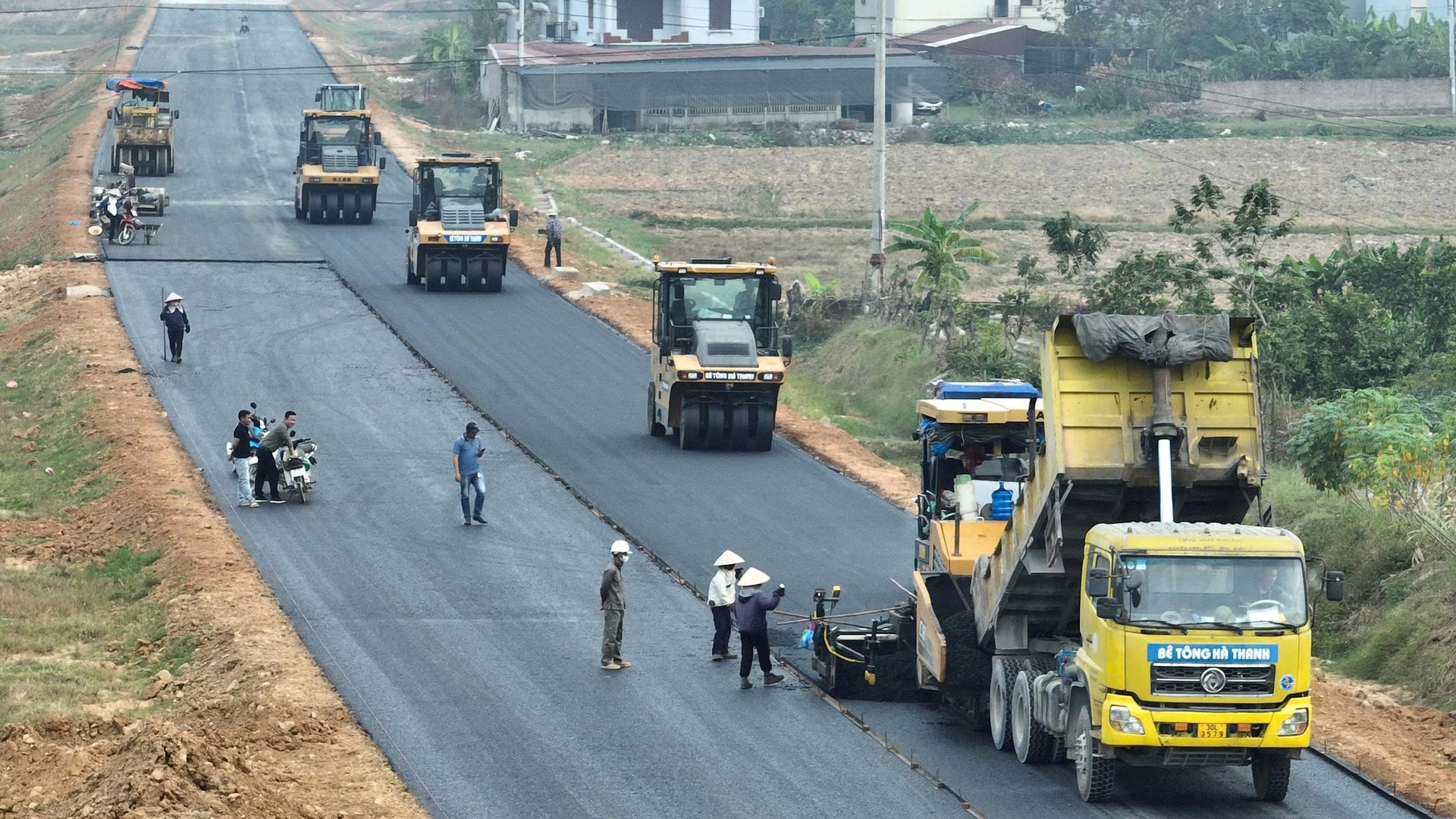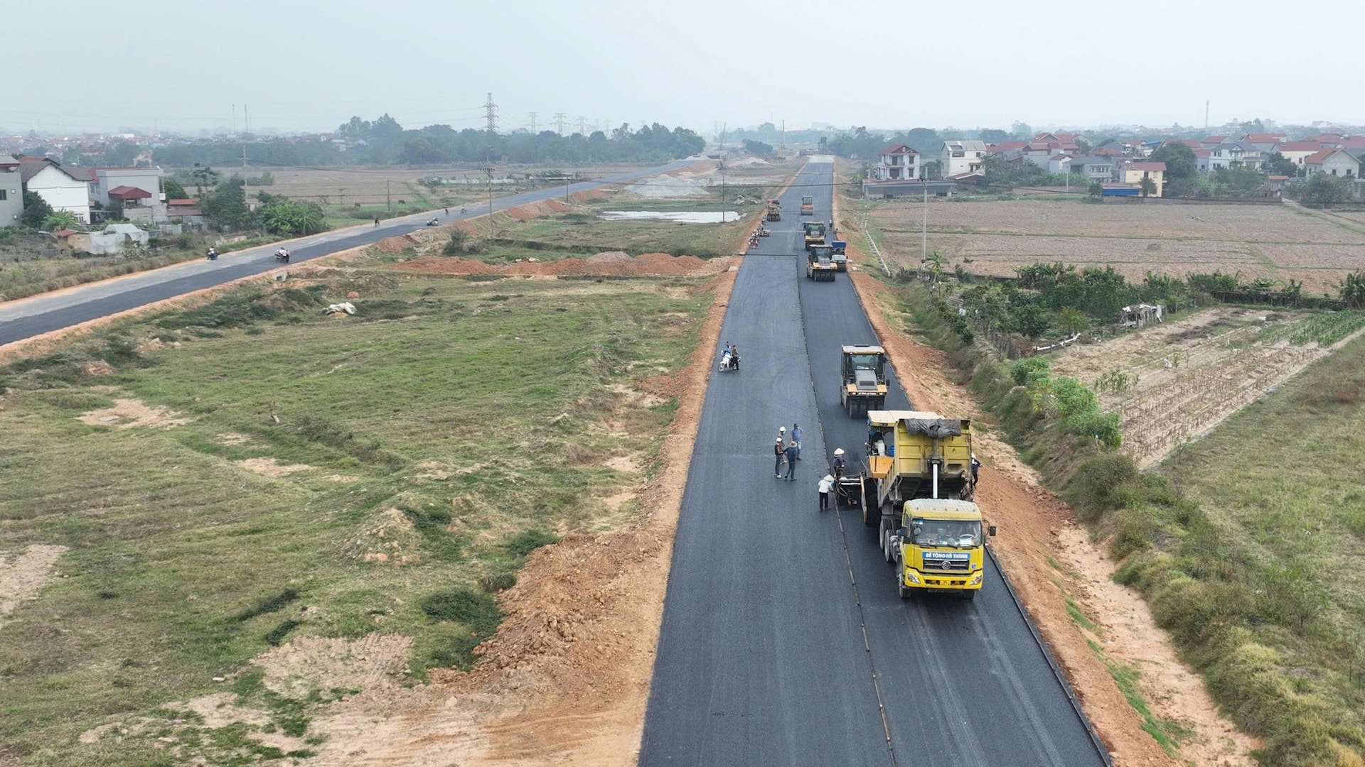 Đường song hành Vành đai 4 - Vùng Thủ đô Hà Nội, đoạn qua địa bàn xã Tiến Thắng đã cơ bản được thảm nhựa. Ảnh: Phạm Hùng