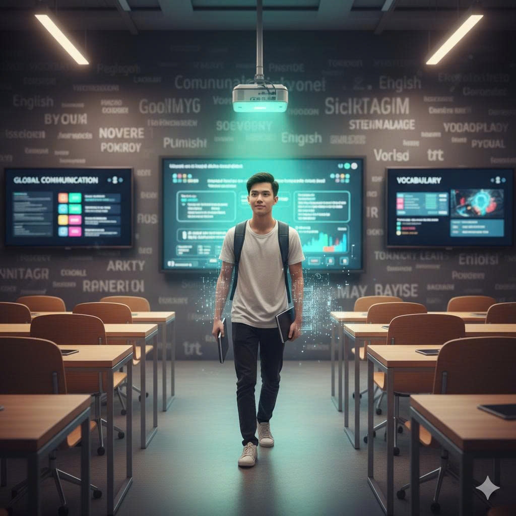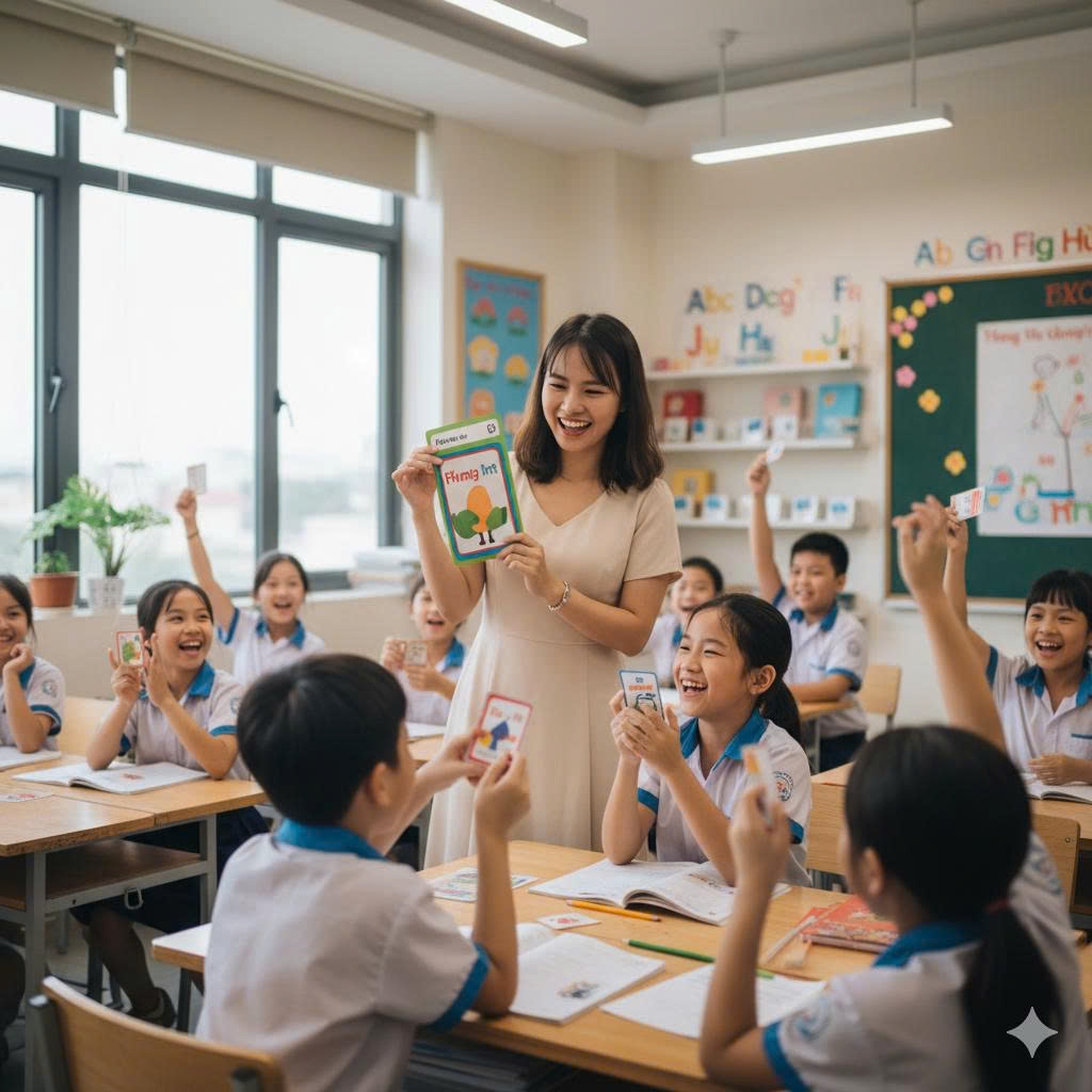 Tiếng Anh không chỉ để học trong lớp, mà để học sinh từng bước sử dụng như một ngôn ngữ trong đời sống, nhất là khi chuẩn mực nguồn nhân lực tương lai đòi hỏi ngoại ngữ là kỹ năng tất yếu (Ảnh minh họa - Gemini A)