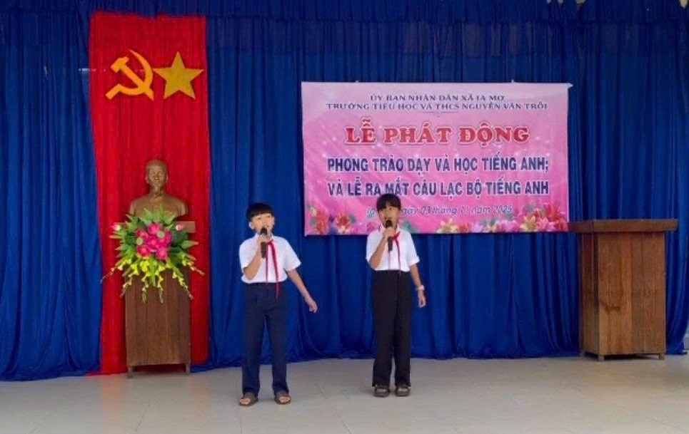 Ông Ngô Văn Vững cho biết thêm, trong năm học sau 2026-2027, trường Nguyễn Văn Trỗi là một trong 248 trường ở vùng biên giới được hỗ trợ xây trường bán trú, trường nội trú liên cấp, sẽ có phòng và các thiết bị hỗ trợ cơ bản trong việc dạy - học tiếng Anh.