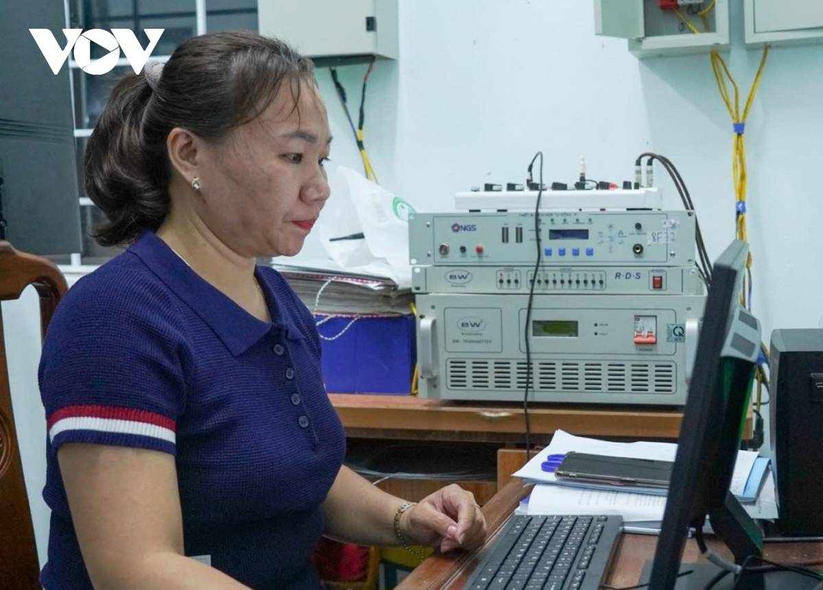 Cán bộ phòng văn hóa xã hội xã Ba Lòng phát lời nhắc nhở học bài truyền đến hệ thống loa truyền thanh
