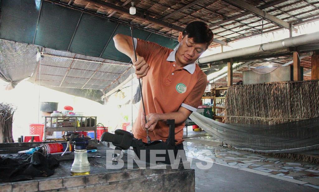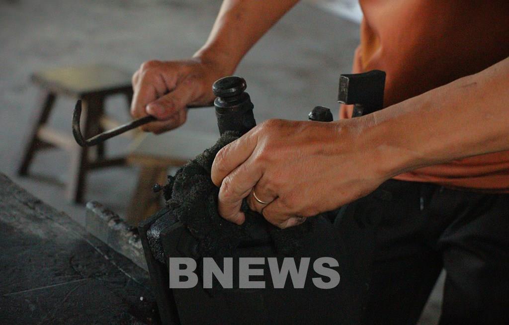 Ổng nổ phải quay liên tục để gạo bên trong chín đều. Ảnh: Nguyễn Hằng – TTXVN