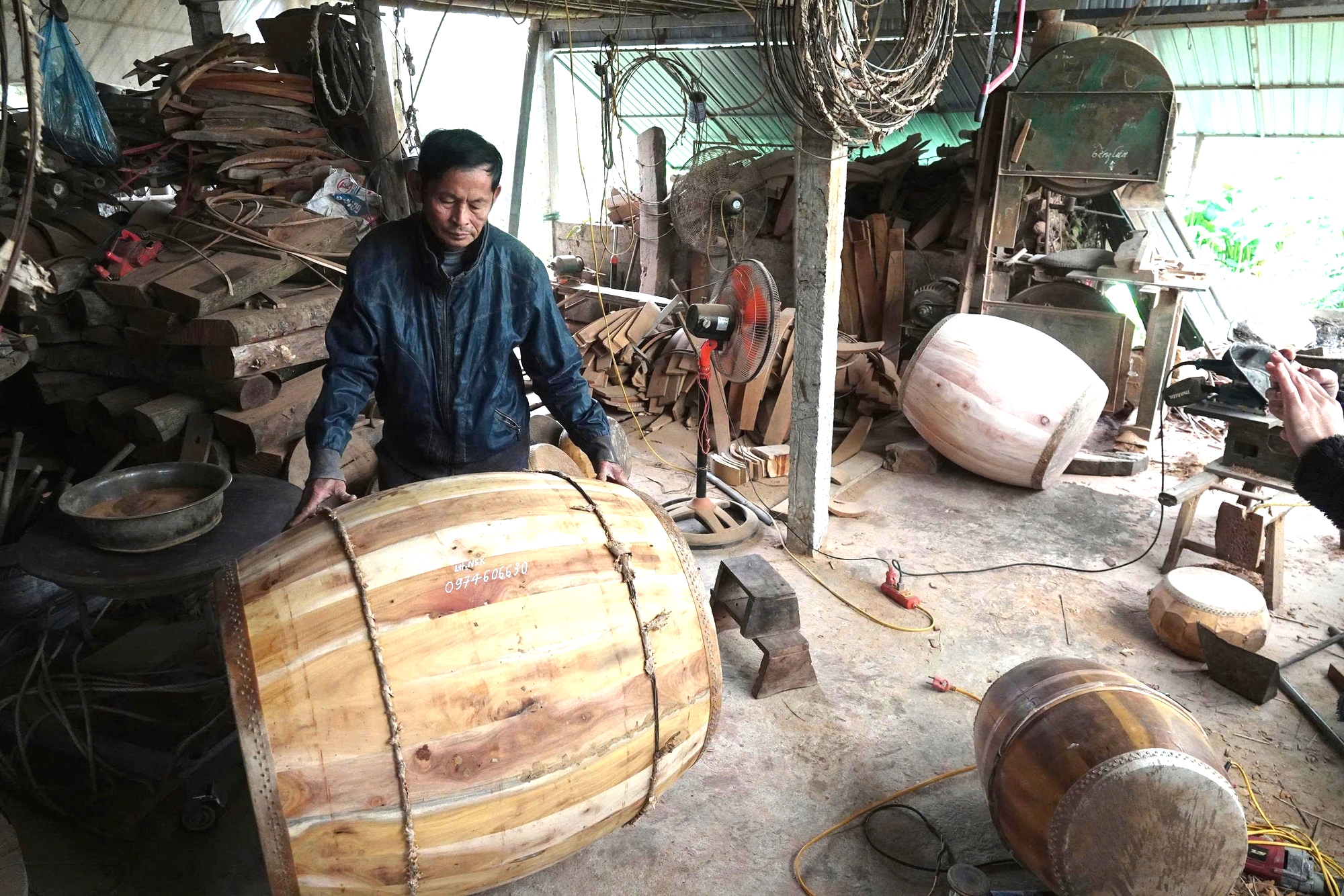 Không khí vào vụ Tết khiến làng nghề làm trống truyền thống lại tất bật hơn.