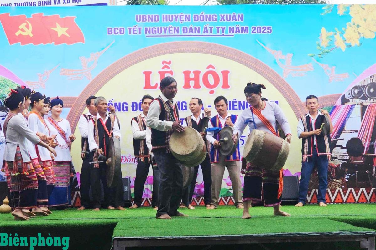 Đồng bào Chăm H'roi biểu diễn trống đôi trong lễ hội. Ảnh: Việt Bắc
