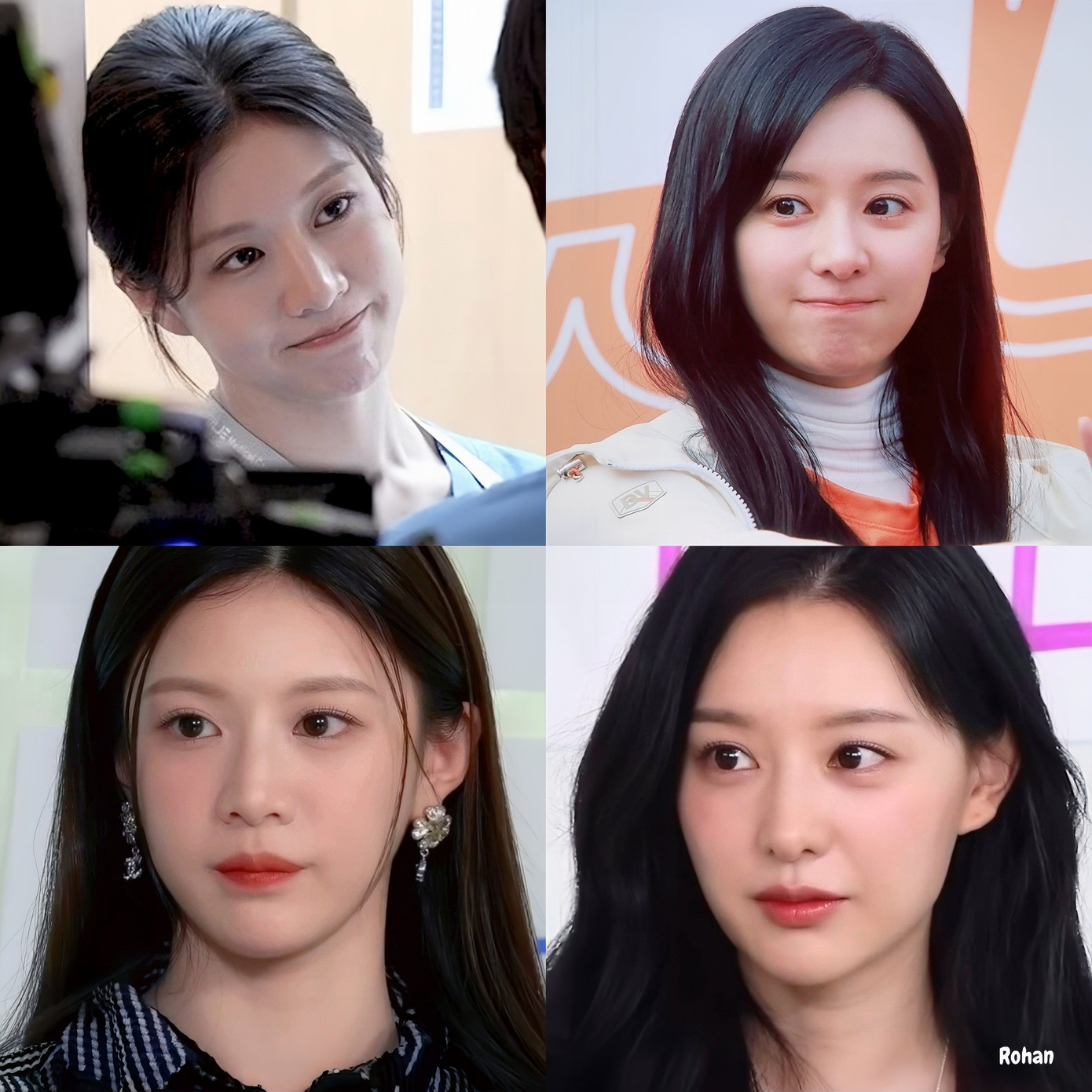 Nhưng ngoài chuyện Go Yoon Jung diễn ổn, tương tác ăn ý với đàn anh Kim Seon Ho thì khán giả còn để ý tới cô vì ngoại hình quá giống Kim Ji Won. Như khi nhìn bức ảnh này, nhiều người sẽ băn khoăn không biết là Kim Ji Won hay Go Yoon Jung. Hai cô gái đều để tóc ngang lưng và tỉa so le, có gương mặt thanh tú với đôi mắt to, khuôn miệng nhỏ.