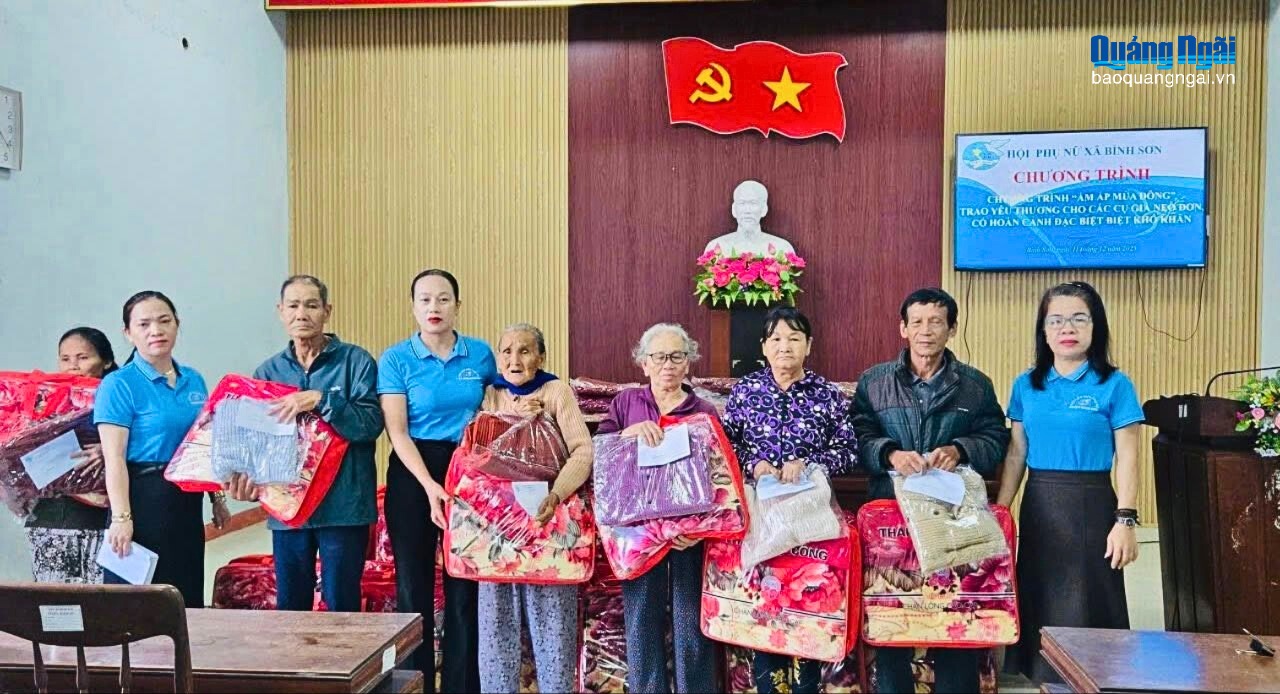 Hội LHPN xã Bình Sơn trao quà trong Chương trình “Áo ấm mùa đông” cho người cao tuổi neo đơn, có hoàn cảnh khó khăn trên địa bàn.