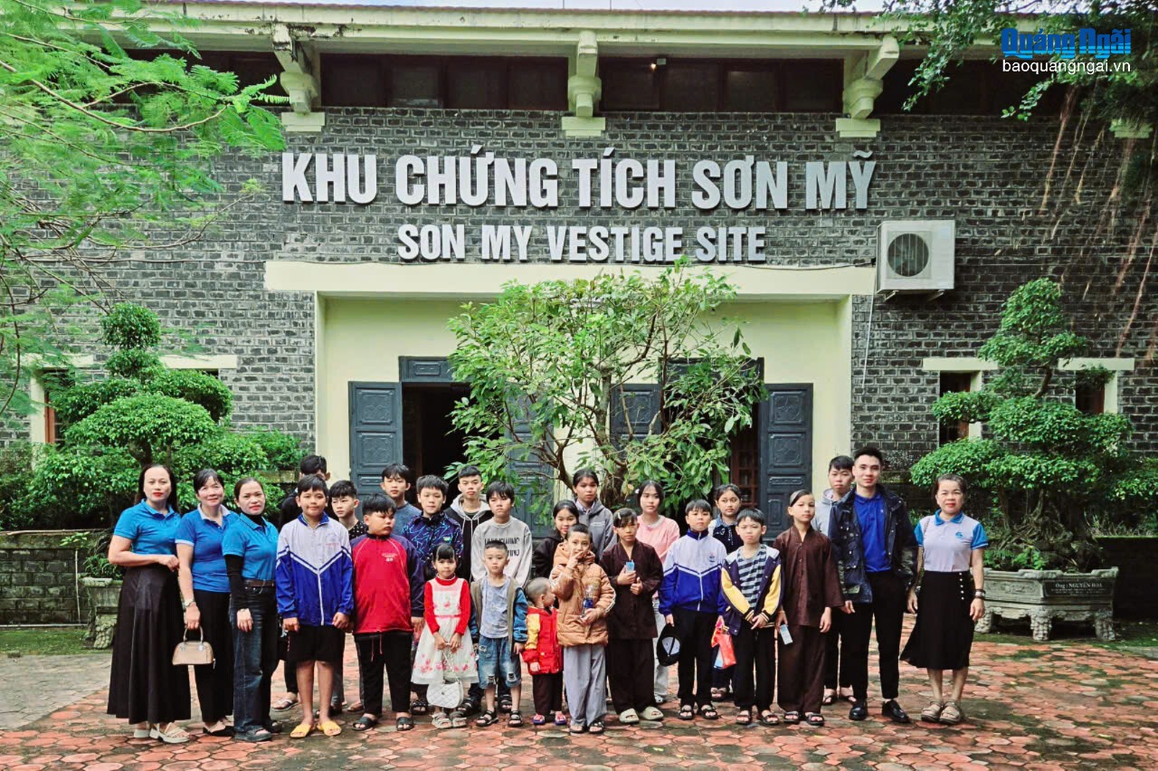Hành trình về nguồn tại Khu Chứng tích Sơn Mỹ là dịp để trẻ mồ côi xã Bình Sơn tìm hiểu lịch sử, văn hóa và truyền thống cách mạng của quê hương.