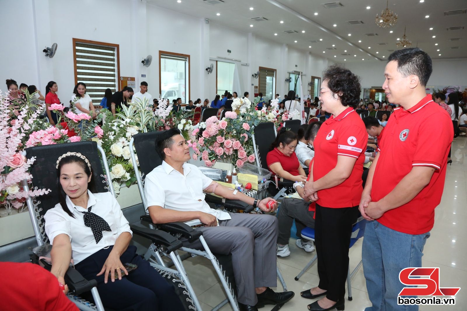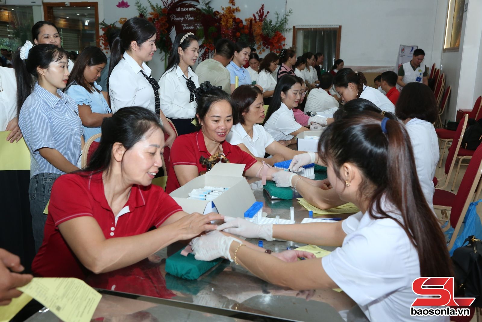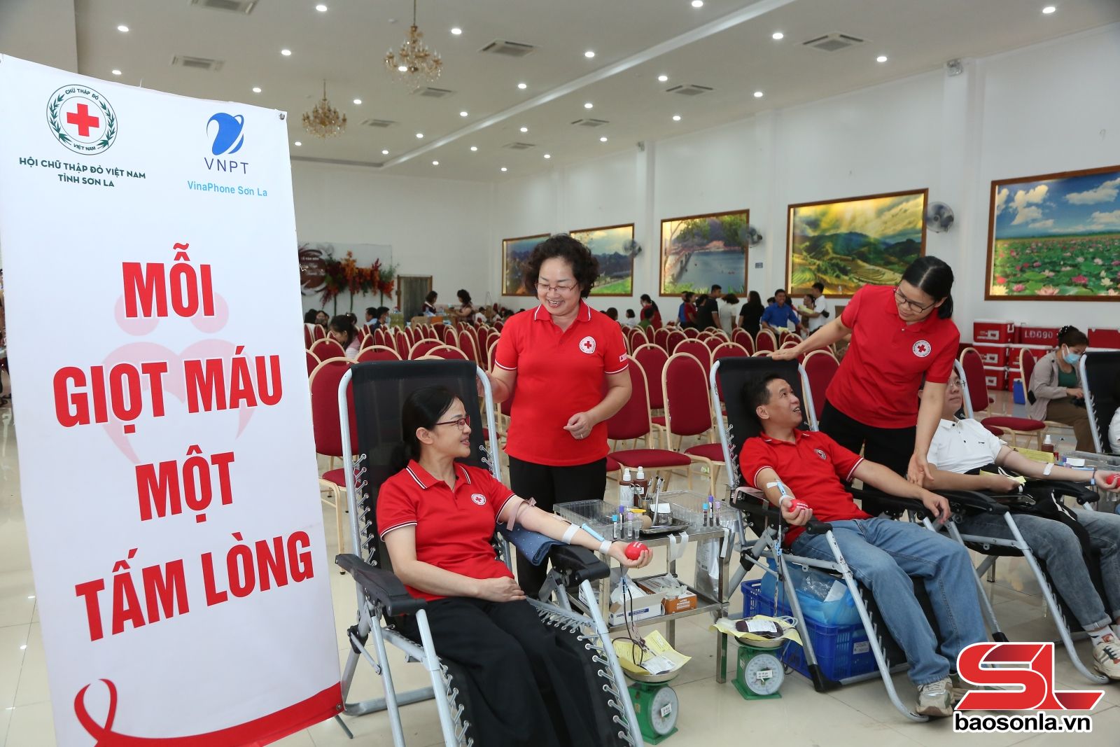 Cán bộ chuyên trách Ban Chỉ đạo Vận động Hiến máu tình nguyện tỉnh Sơn La tham gia hiến máu tình nguyện.