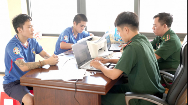 Cán bộ Đồn Biên phòng và Công an các tỉnh Đồng Nai làm việc với các công dân.