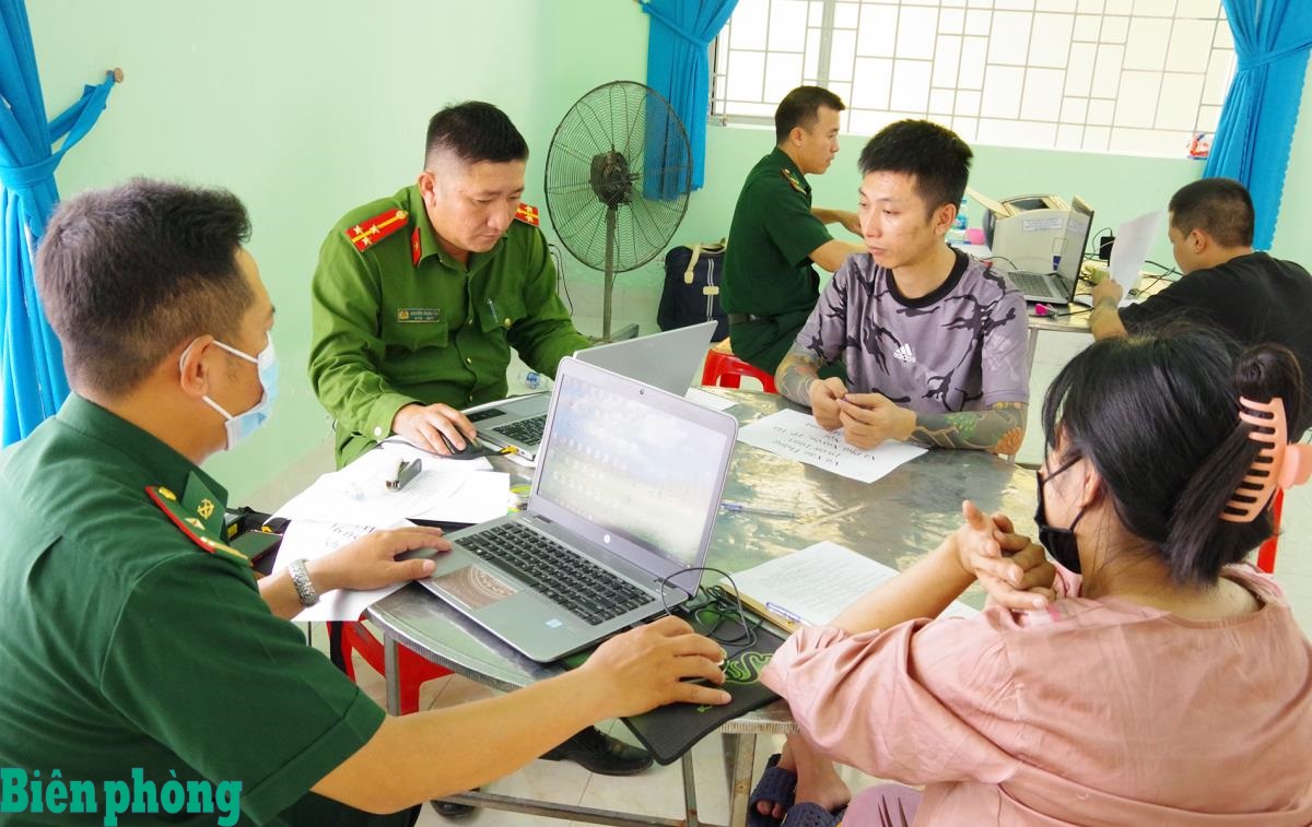 Cán bộ Bộ đội Biên phòng và Công an tỉnh Tây Ninh lấy lời khai, làm thủ tục nhập cảnh cho các công dân được lực lượng chức năng Campuchia trao trả. Ảnh: Lê Xuân