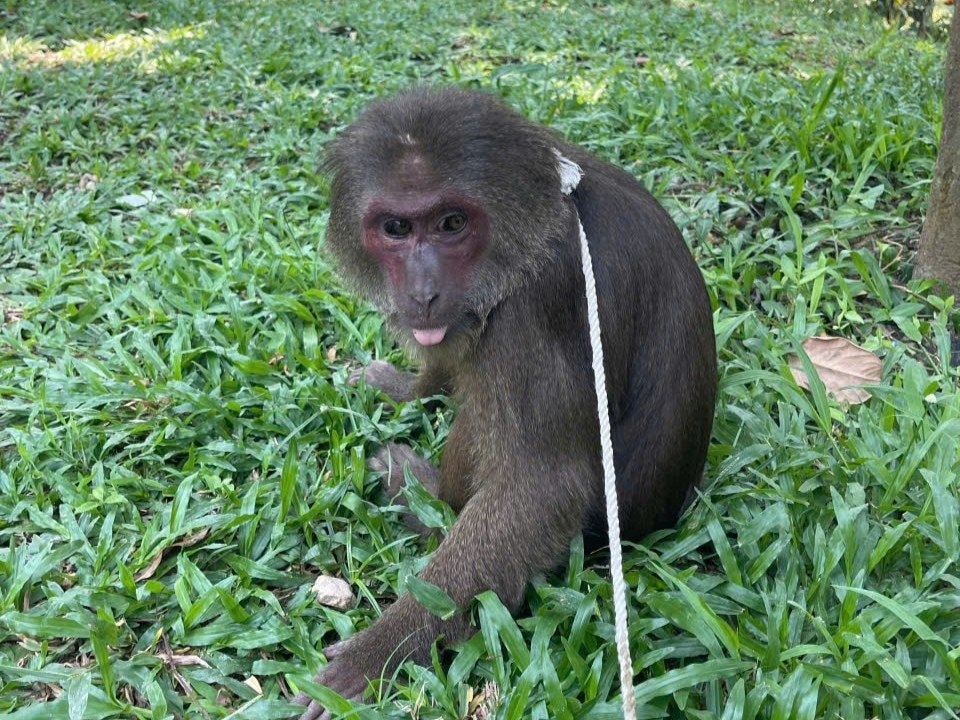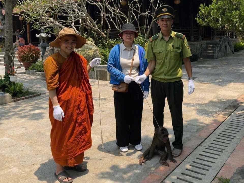 Tiếp nhận cá thể khỉ mặt đỏ quý hiếm đi lạc vào chùa ở Huế.