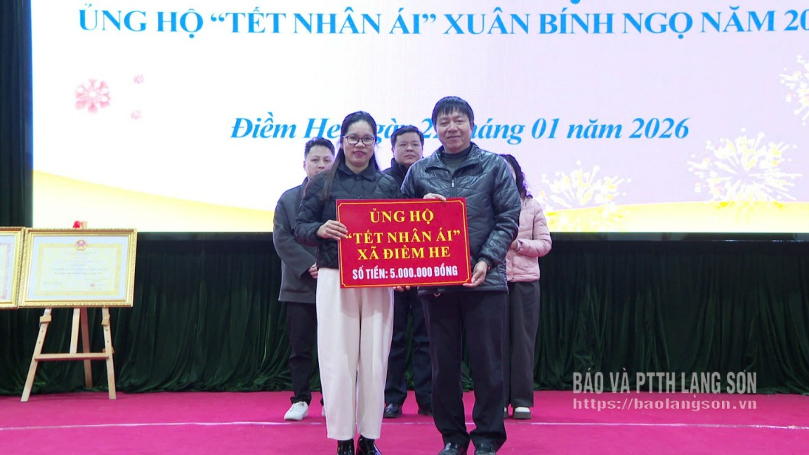 Đối với phong trào “Tết Nhân ái” Xuân Bính Ngọ năm 2026, xã Điềm He vận động đội ngũ cán bộ, công chức, các cơ quan, đơn vị, doanh nghiệp, cùng người dân tham gia ủng hộ bằng tiền mặt hoặc hiện vật. Xã phấn đấu vận động, tiếp nhận và trao tặng ít nhất 300 suất quà gửi đến người nghèo, người có hoàn cảnh đặc biệt khó khăn, người khuyết tật... góp phần đảm bảo an sinh xã hội trên địa bàn.