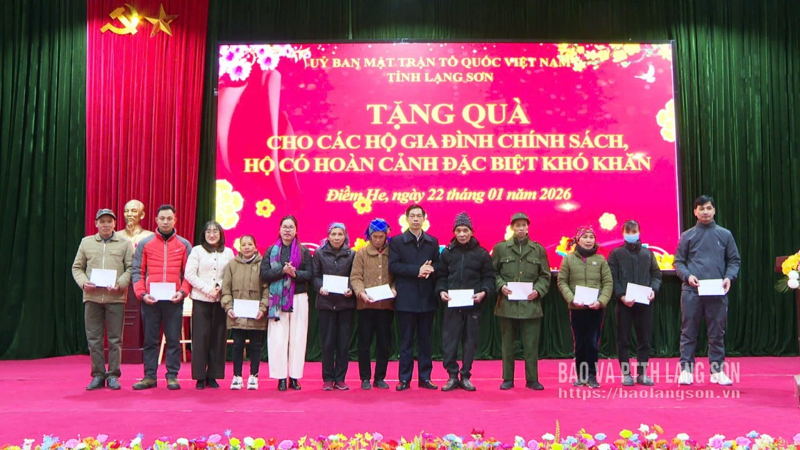 Nhân dịp này, lãnh đạo xã Điềm He đã trao các phần quà của Ủy ban MTTQ Việt Nam tỉnh cho các gia đình chính sách, hộ có hoàn cảnh đặc biệt khó khăn trên địa bàn