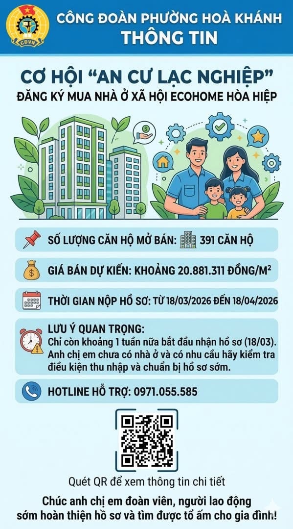 Công đoàn phường khuyến nghị đoàn viên, người lao động chưa có nhà ở và có nhu cầu mua nhà ở xã hội cần chủ động tìm hiểu các điều kiện, đặc biệt là điều kiện về thu nhập, đồng thời chuẩn bị hồ sơ sớm để đảm bảo thời gian nộp theo quy định.