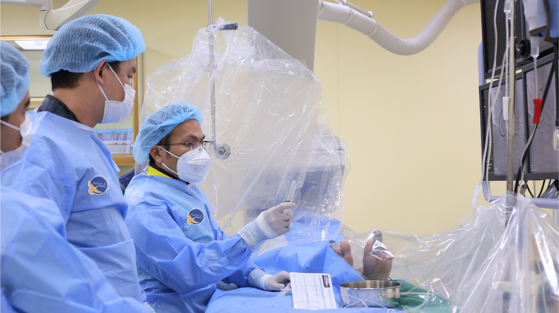 Các bác sĩ kích hoạt kịp thời quy trình báo động đỏ và triển khai can thiệp đặt stent mạch vành trong “giờ vàng” để cứu bệnh nhân.