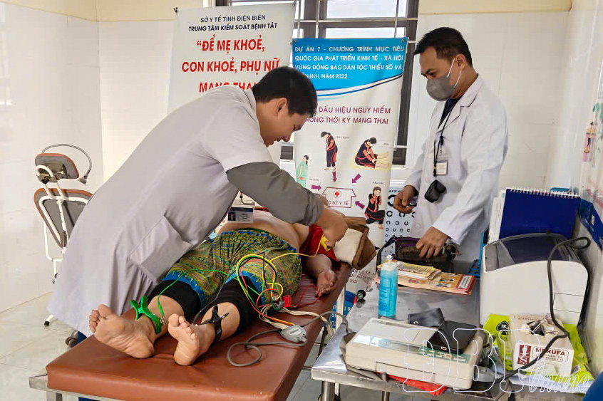 Cán bộ BVĐK tỉnh siêu âm cho bệnh nhân tại xã Mường Toong.