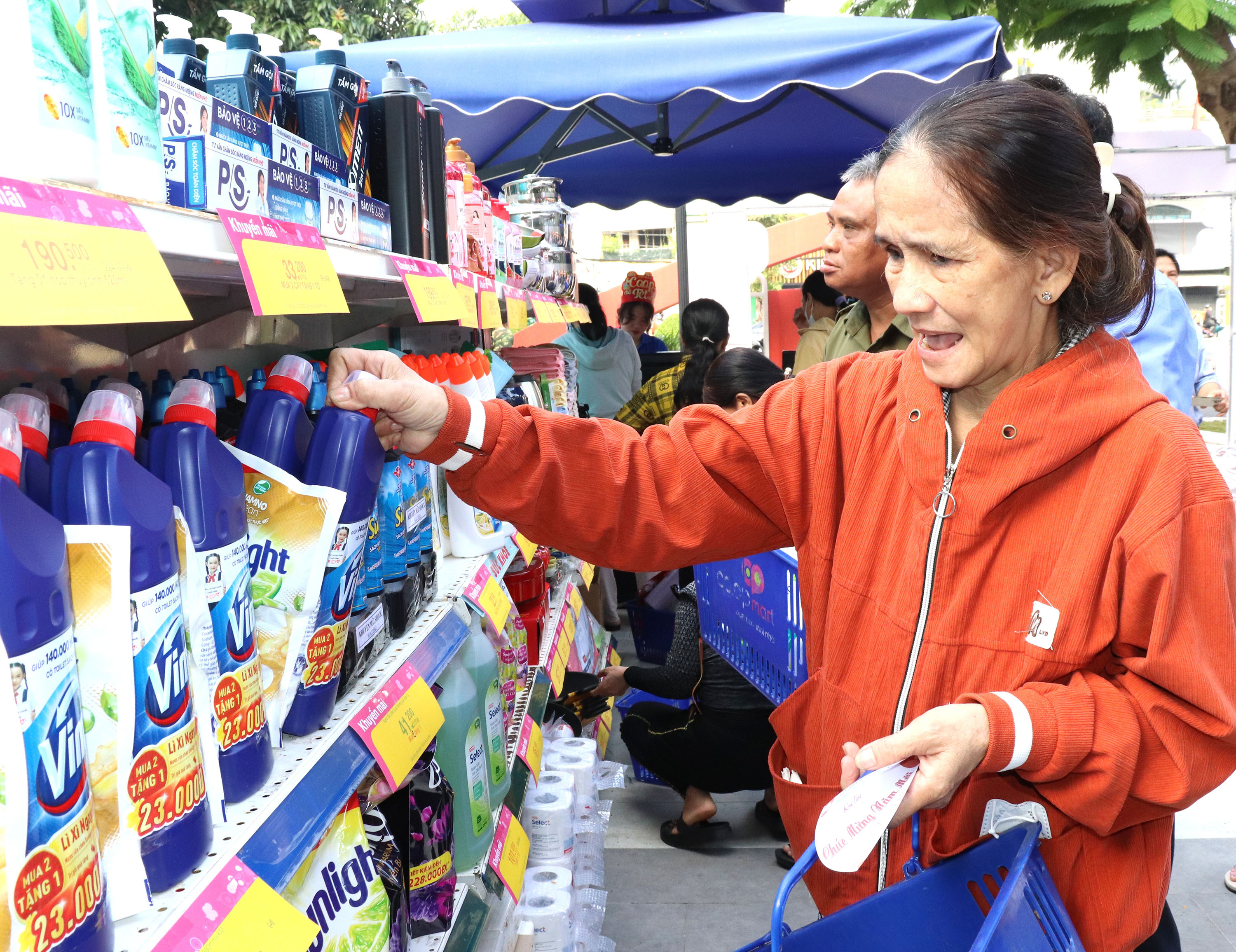 Người lao động mua hàng giảm giá tại điểm phúc lợi đoàn viên do tổ chức Công đoàn TPHCM thực hiện (ẢNH: THÁI PHƯƠNG)