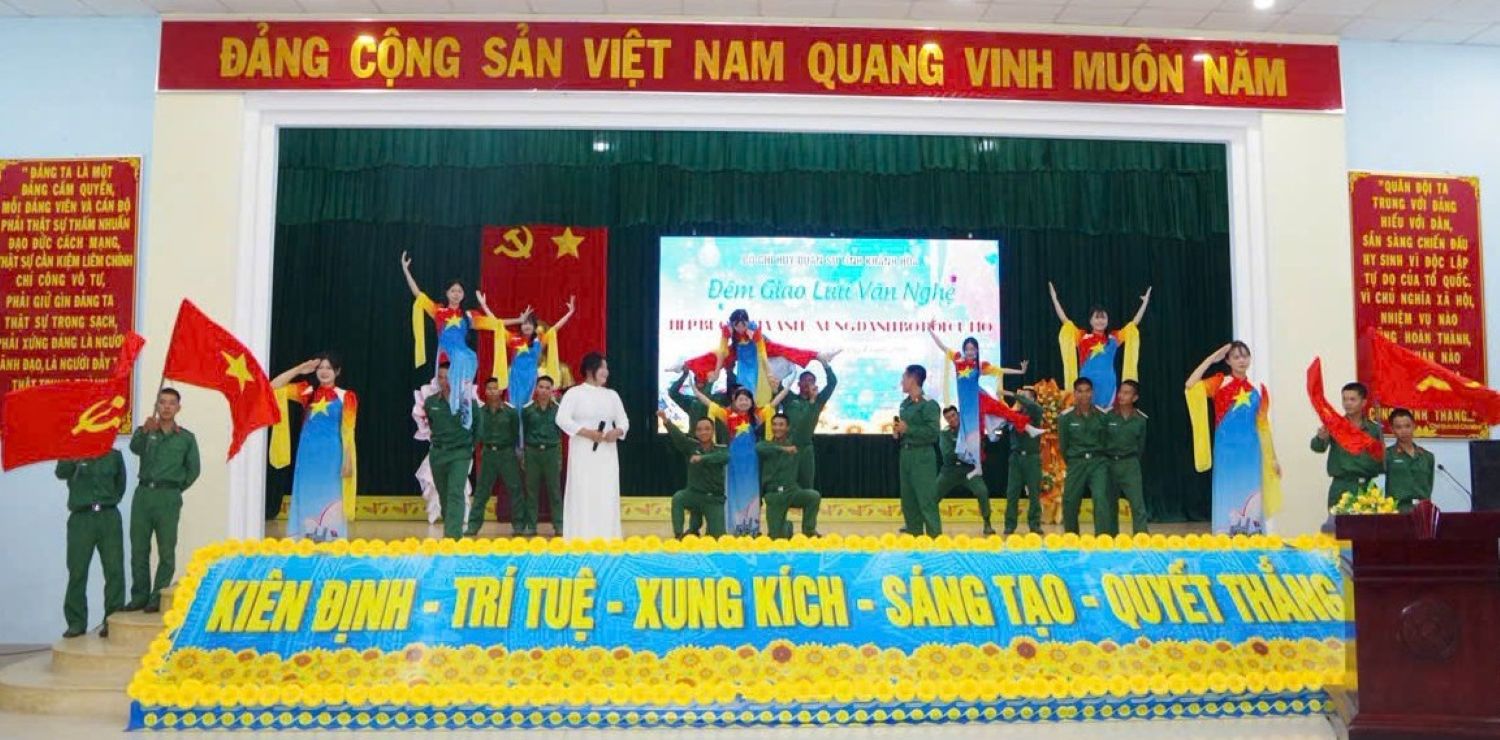 Việc tiếp sức chiến sĩ trẻ huấn luyện còn được thực hiện sau những giờ huấn luyện. Khi màn đêm buông xuống, thao trường rực rỡ sắc màu bởi chương trình giao lưu văn nghệ đặc sắc. Những tiết mục ca múa nhạc ca ngợi Đảng, quê hương và tình đồng đội do các diễn viên không chuyên từ Bộ Chỉ huy Quân sự tỉnh cùng đơn vị kết nghĩa biểu diễn đã tạo nên nhịp cầu kết nối, sẻ chia, tạo nguồn động lực giúp những người lính trẻ thêm vững vàng ý chí, quyết tâm hoàn thành xuất sắc mọi nhiệm vụ được giao.