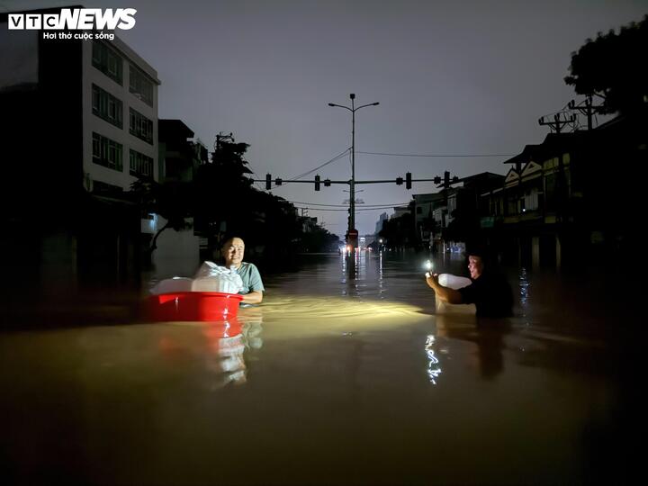 Nhiều tuyến phố tại tỉnh Thái Nguyên mất điện, người dân dùng đèn pin để ra tín hiệu với lực lượng cứu trợ.