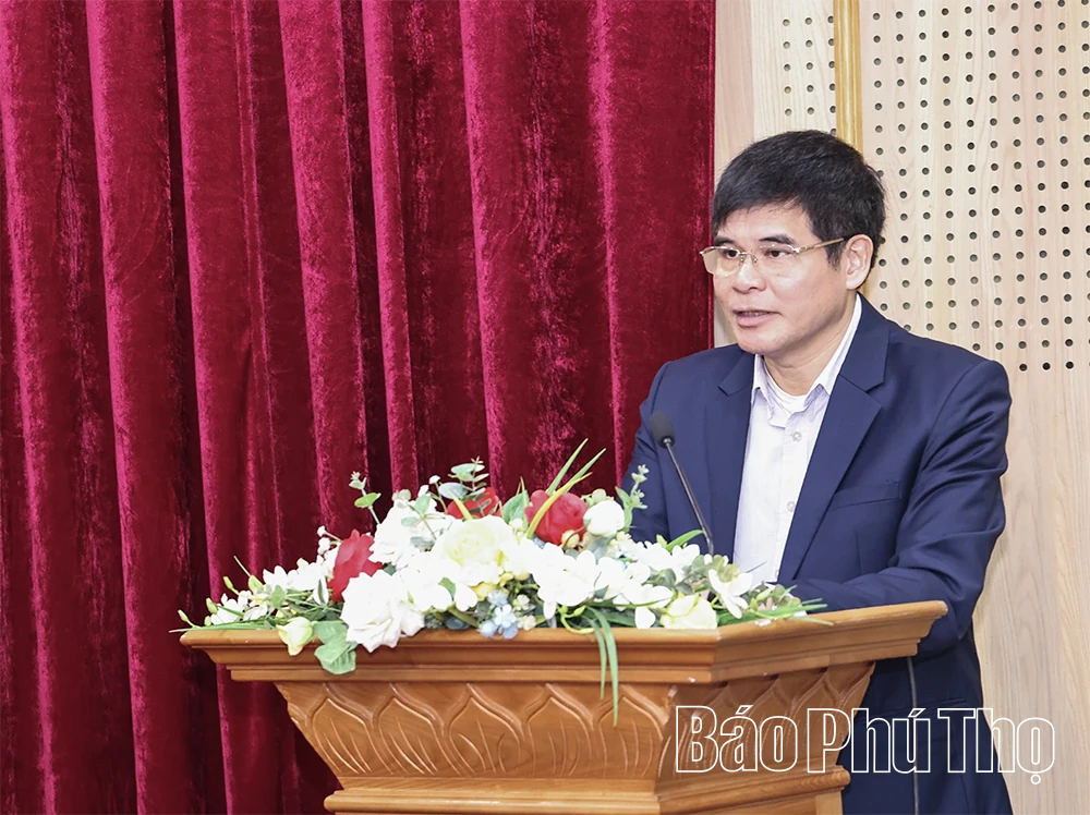 Đồng chí Dương Hoàng Hương - Ủy viên Ban Thường vụ Tỉnh ủy, Giám đốc Sở Văn hóa, Thể thao và Du lịch tỉnh Phú Thọ, Cụm trưởng Cụm thi đua số 3 năm 2025 phát biểu tại hội nghị.