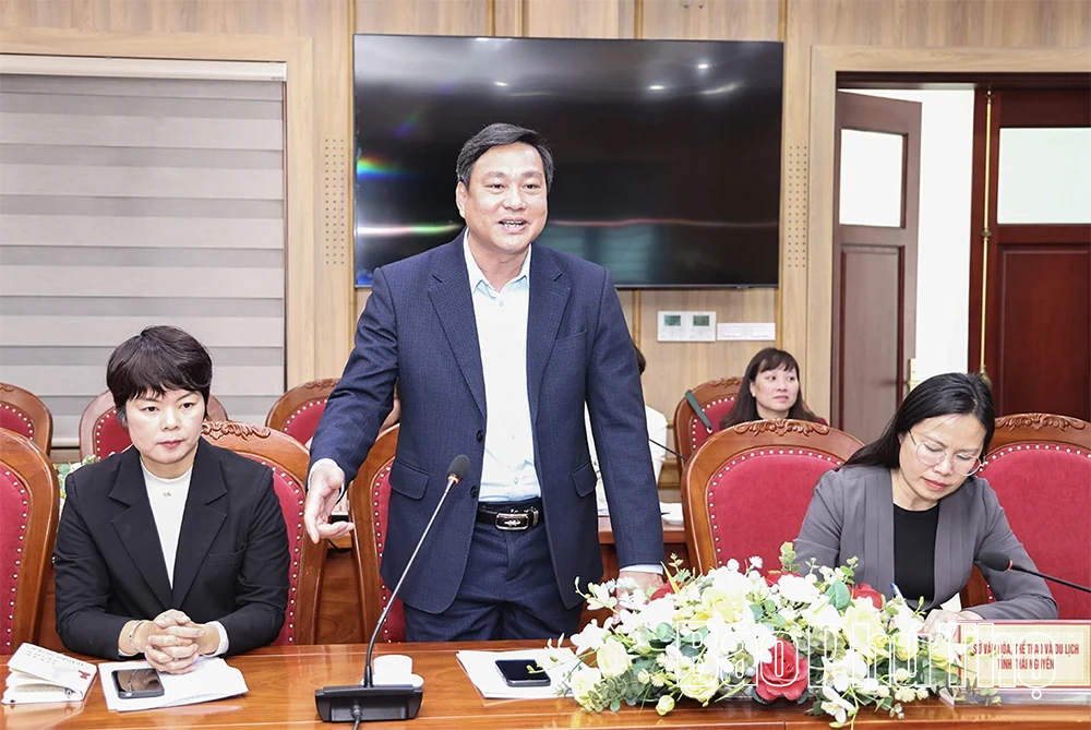 Đại diện Sở Văn hóa, Thể thao và Du lịch tỉnh Thái Nguyên tham luận về công tác thi đua khen thưởng tại hội nghị.