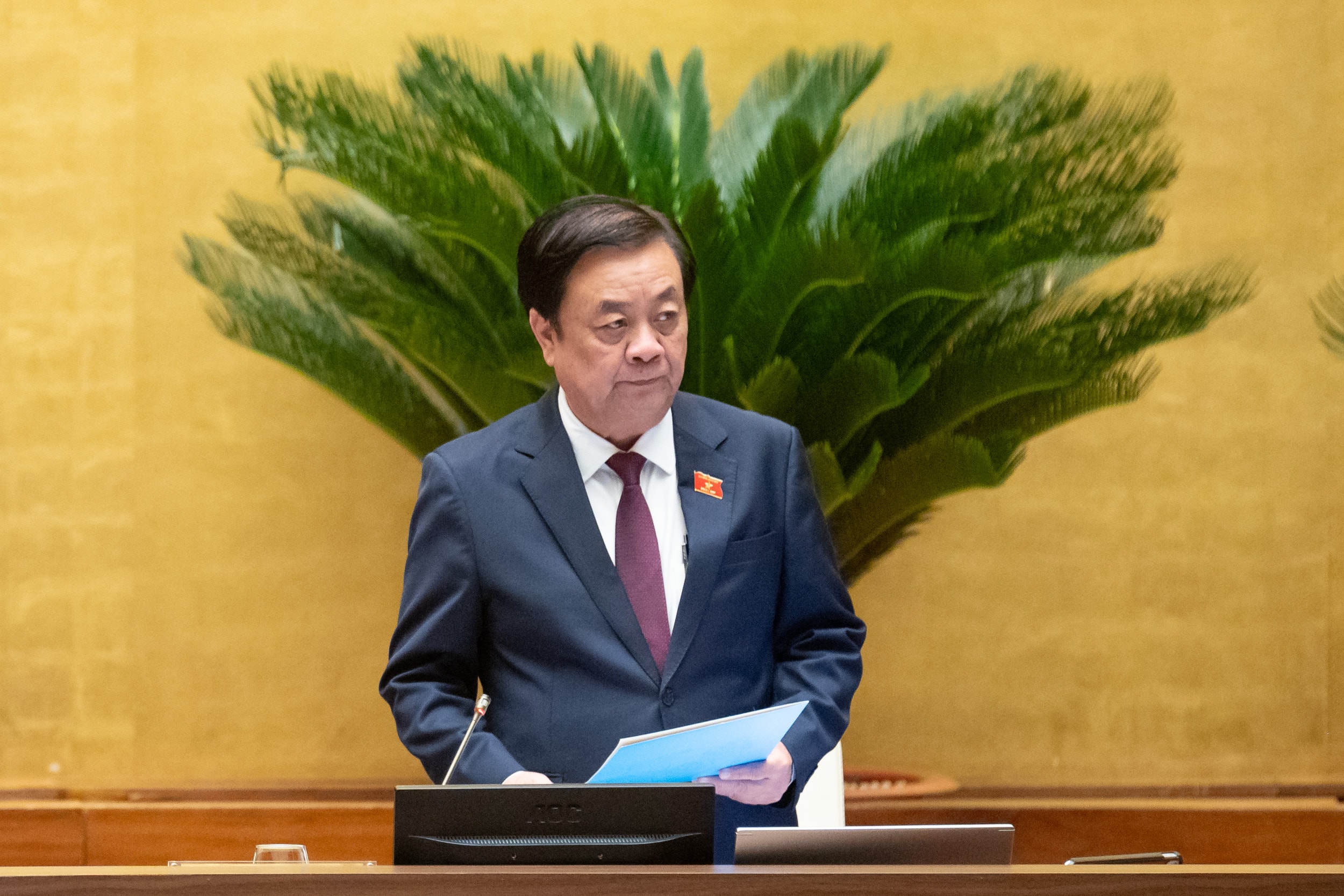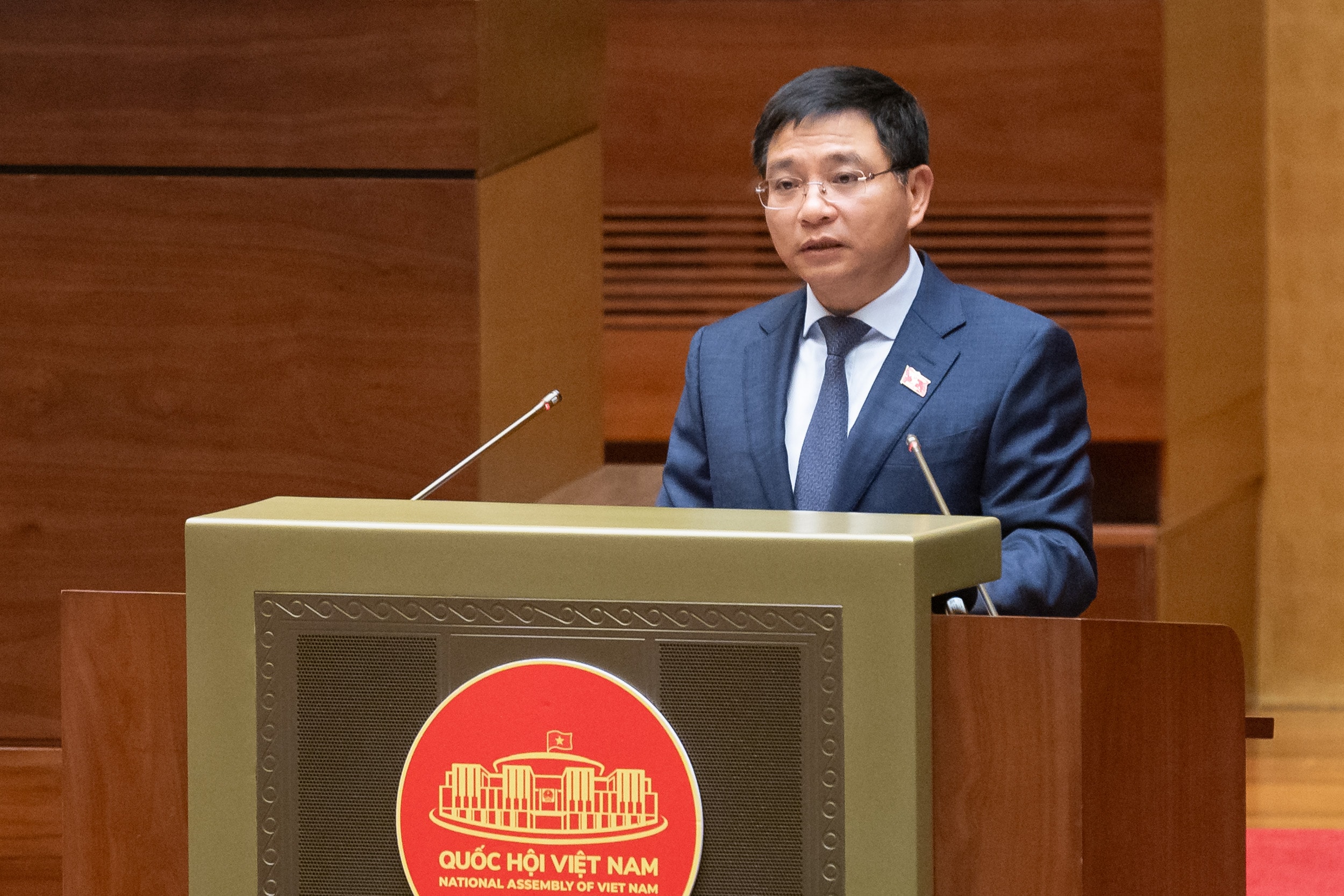 Bộ trưởng Bộ Tài chính Nguyễn Văn Thắng trình bày Tờ trình về dự án Luật Dự trữ quốc gia (sửa đổi). Ảnh: Phạm Thắng