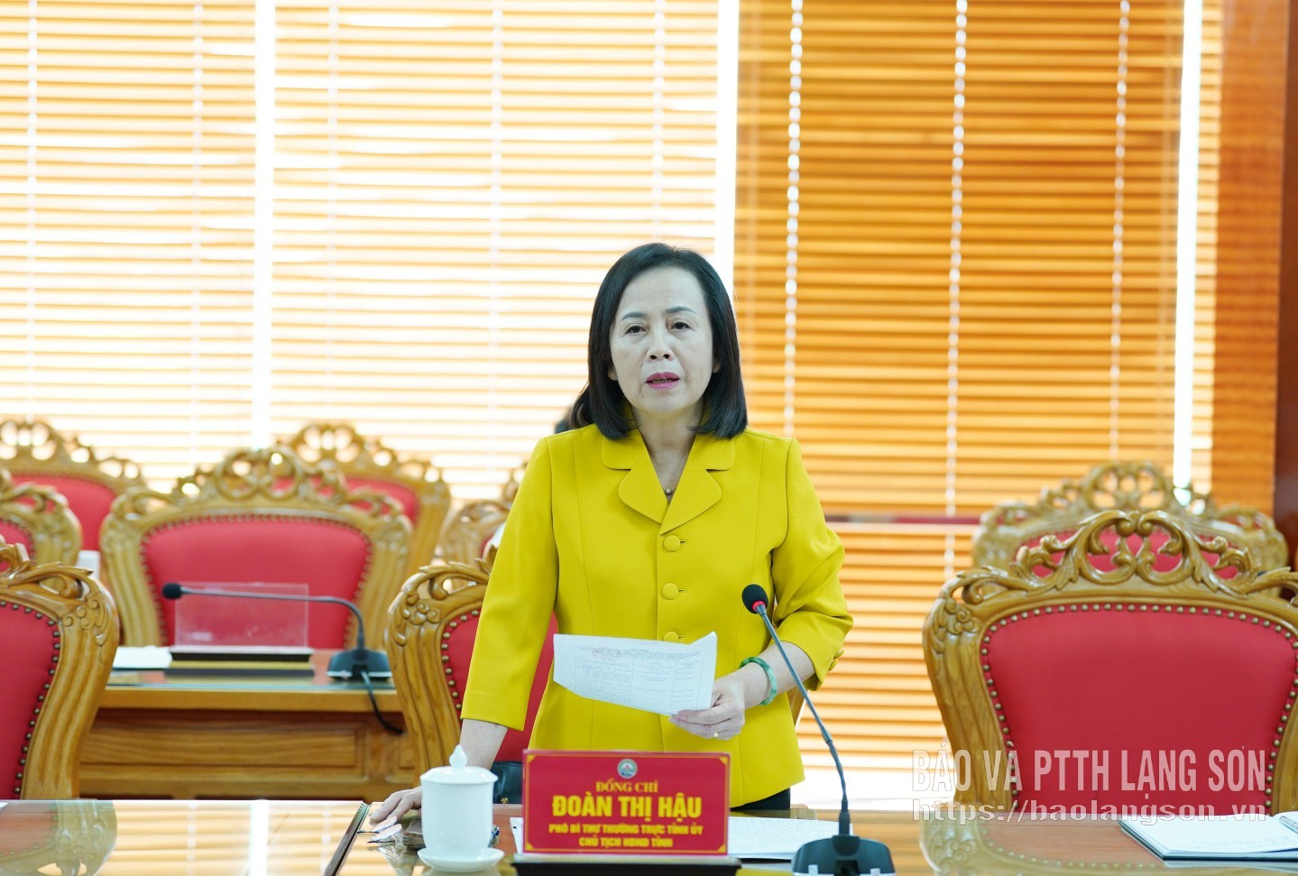 Đồng chí Đoàn Thị Hậu, Phó Bí thư Thường trực Tỉnh ủy, Chủ tịch HĐND tỉnh phát biểu tại buổi làm việc
