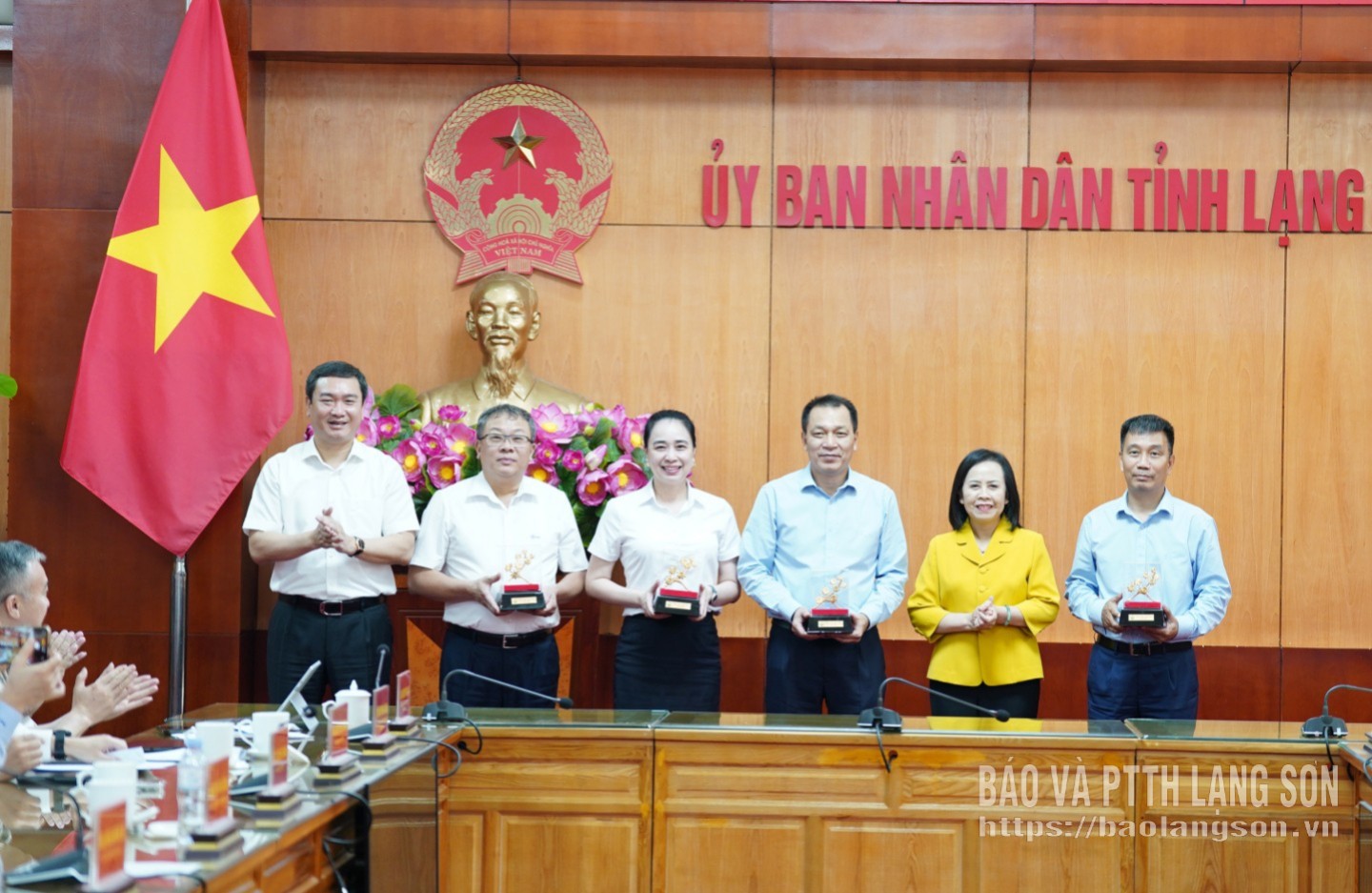 Lãnh đạo tỉnh Lạng Sơn trao tặng biểu trưng của tỉnh Lạng Sơn cho lãnh đạo Tập đoàn và lãnh đạo các tổng công ty trực thuộc Tập đoàn Điện lực Việt Nam
