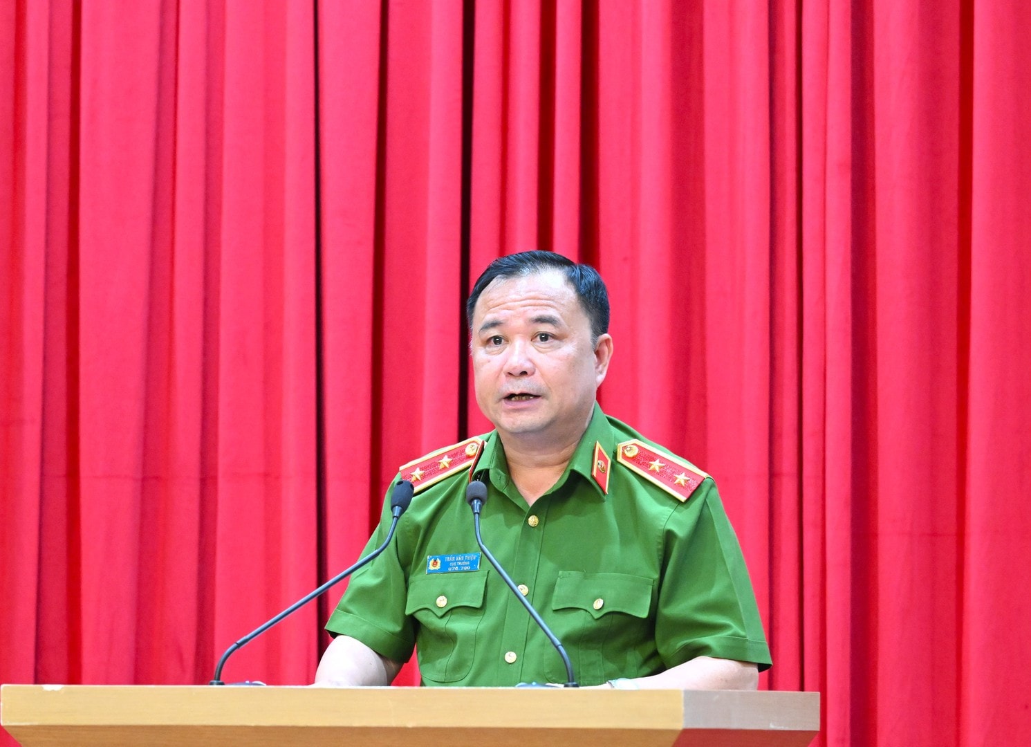 Thừa ủy quyền, Cục trưởng Cục Cảnh sát quản lý tạm giữ, tạm giam và thi hành án hình sự tại cộng đồng Trung tướng Trần Văn Thiện điều hành tham luận tại Hội nghị.