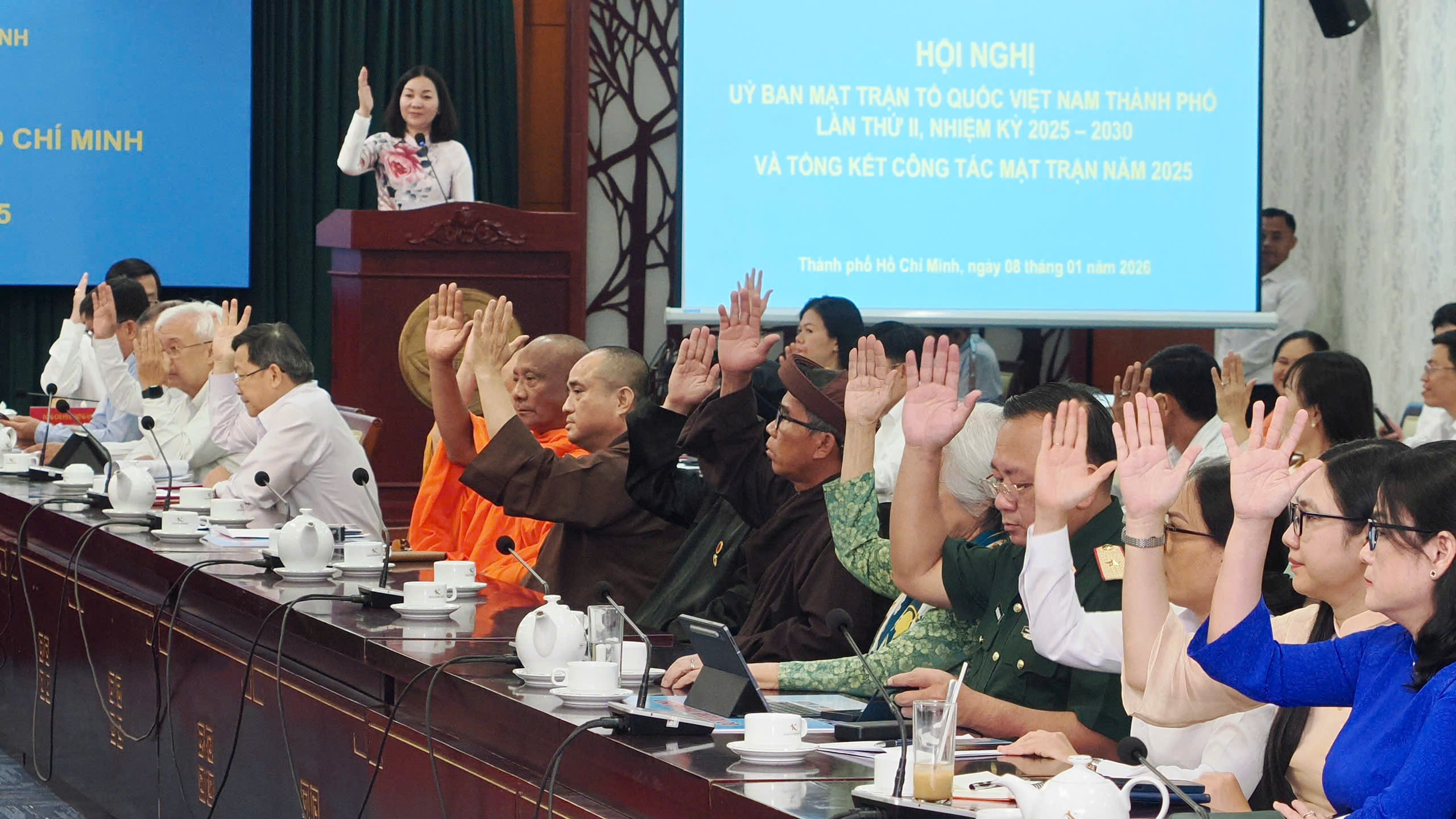 Hội nghị thông qua Báo cáo kết quả công tác Mặt trận năm 2025, Chương trình phối hợp và thống nhất hành động năm 2026, Quy chế làm việc của Ủy ban và Ban Thường trực Ủy ban MTTQ Việt Nam TPHCM nhiệm kỳ 2025 - 2030, Chương trình làm việc trọng tâm toàn khóa, Chương trình hành động thực hiện Nghị quyết Đại hội đại biểu MTTQ Việt Nam TPHCM lần thứ I.
