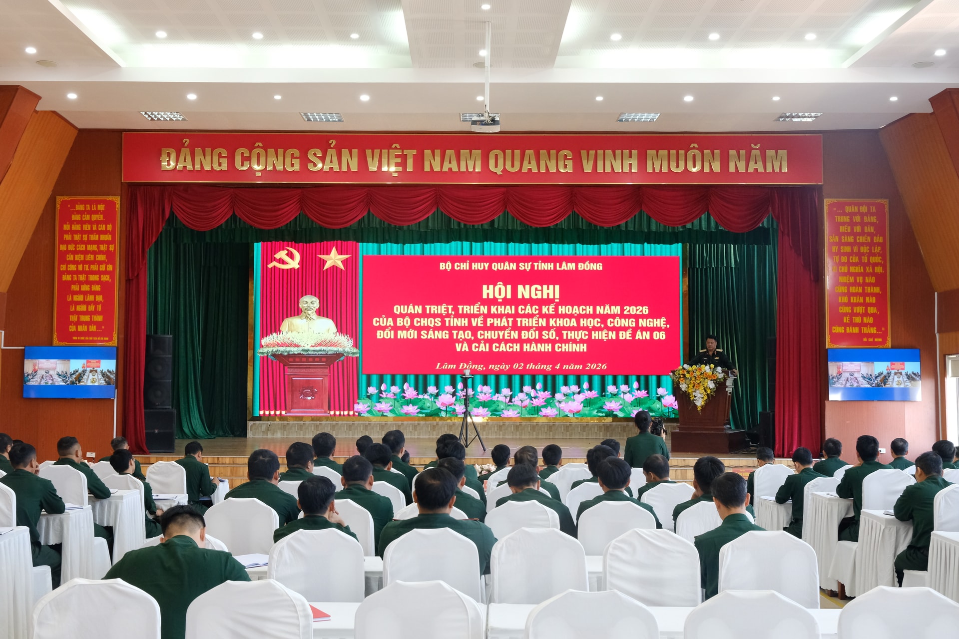 Thời gian qua, công tác phát triển khoa học - công nghệ, đổi mới sáng tạo và chuyển đổi số trong LLVT tỉnh được triển khai đồng bộ, đạt nhiều kết quả tích cực. Đến nay, 100% cơ quan, đơn vị được trang bị máy tính; hệ thống máy chủ tại Sở Chỉ huy được nâng cấp, đáp ứng yêu cầu nhiệm vụ. Mạng Truyền số liệu quân sự và hệ thống thoại quân sự được triển khai đến 100% đơn vị cấp 3. Trong quý I/2026, Bộ CHQS tỉnh đã phối hợp với Binh chủng Thông tin liên lạc, Chi nhánh Viettel Lâm Đồng cài đặt, cấp phát 248 bộ máy tính, kết nối thông suốt mạng truyền số liệu quân sự cho 124 ban CHQS cấp xã, phường, đặc khu.