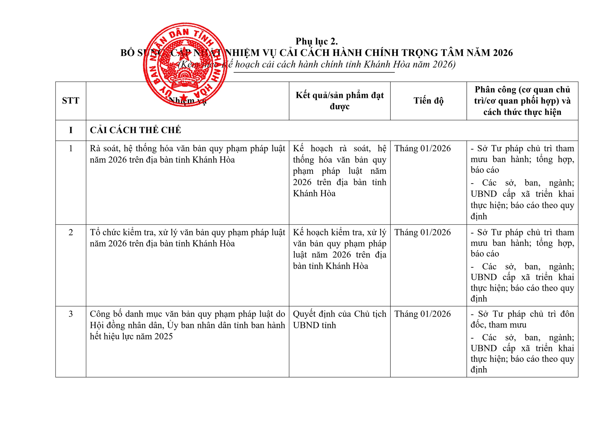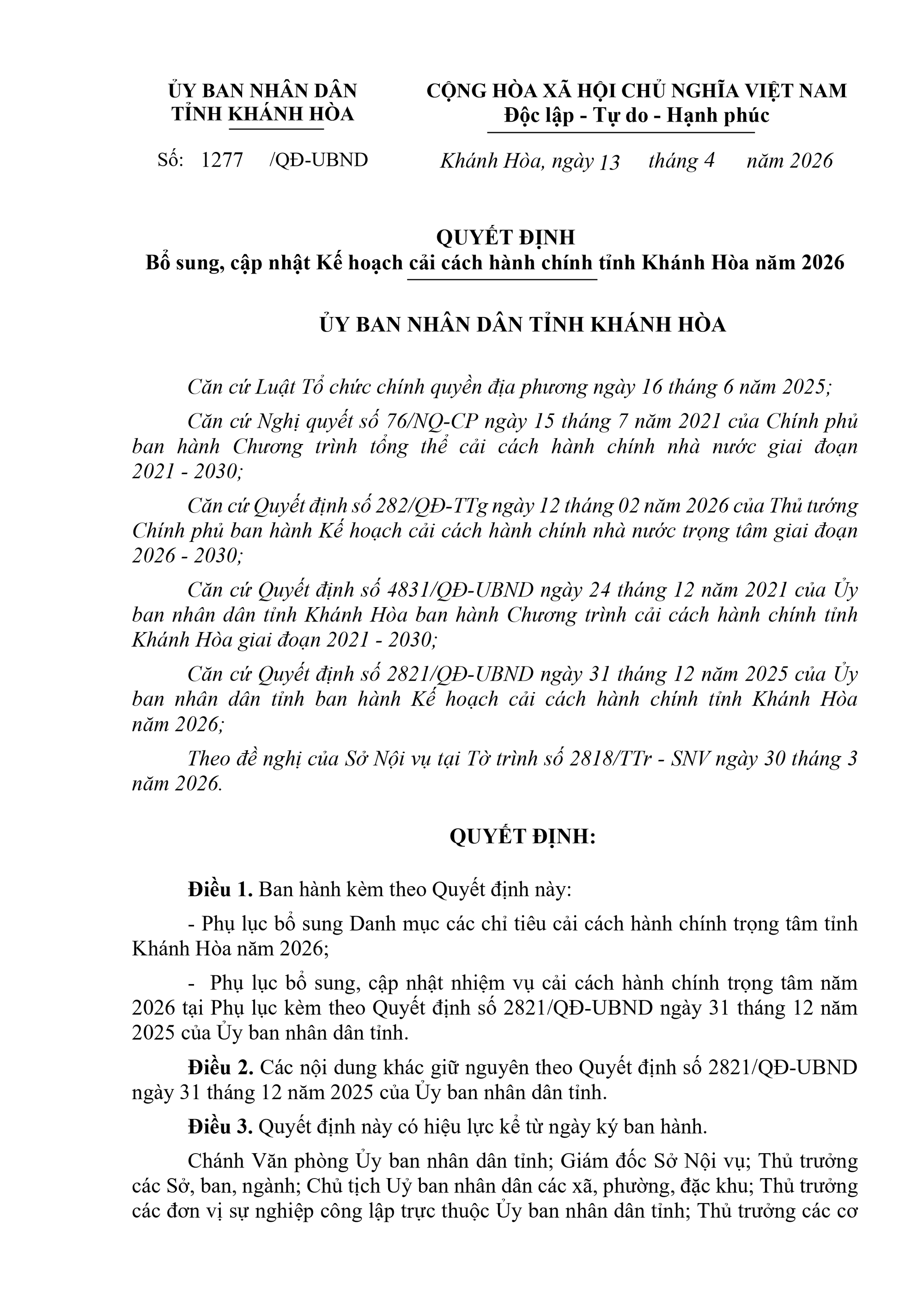 TOÀN VĂN: Kế hoạch số 1277/QĐ-UBND về Kế hoạch cải cách hành chính tỉnh Khánh Hòa năm 2026./.