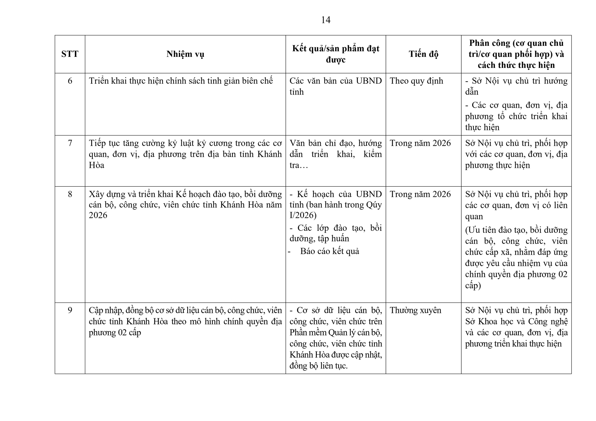 Xây dựng và triển khai Kế hoạch đào tạo, bồi dưỡng cán bộ, công chức, viên chức tỉnh Khánh Hòa năm 2026;