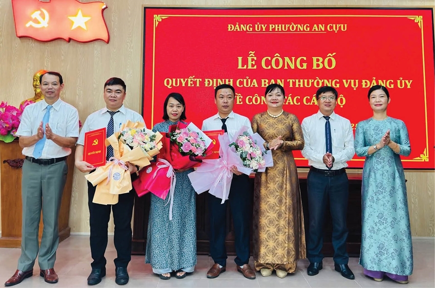 Bổ nhiệm cán bộ tại phường An Cựu sau khi vận hành chính quyền địa phương 2 cấp. Ảnh: Thu Thủy