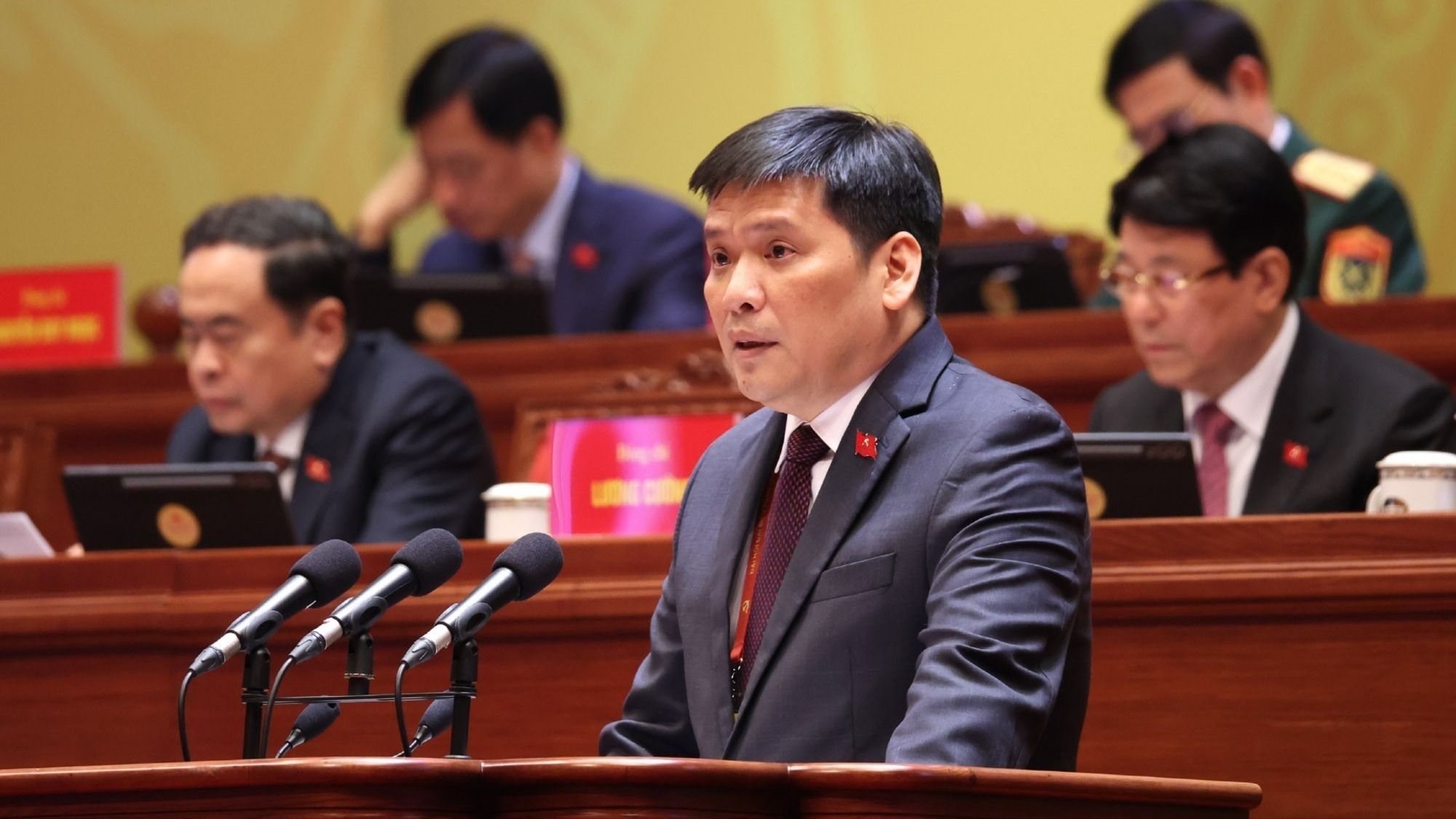 Các đại biểu dự phiên thảo luận tại hội trường về các dự thảo văn kiện Đại hội. Ảnh: VIẾT CHUNG