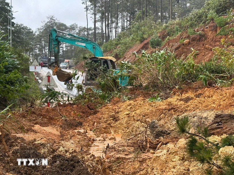 Dù lực lượng chức năng đã khẩn trương xử lý và tạm thông tuyến vào 12 giờ trưa 23/11, song đến sáng 24/11, đất đá tiếp tục sạt xuống gây ách tắc đường./.