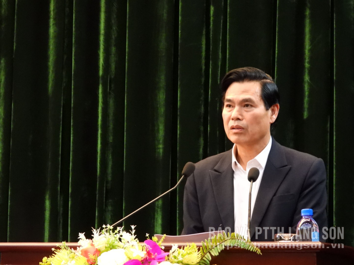 Lãnh đạo Đảng ủy xã Hữu Lũng phát biểu tại hội nghị