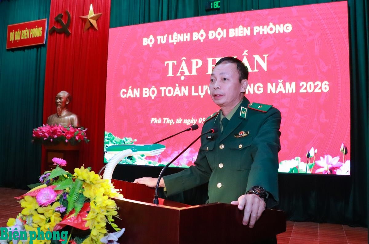 Thiếu tướng Hoàng Hữu Chiến, Phó Tư lệnh, Tham mưu trưởng Bộ đội Biên phòng phát biểu chỉ đạo tại lớp tập huấn cán bộ toàn lực lượng năm 2026, ngày 5/1/2026. Ảnh: Dân Chủ