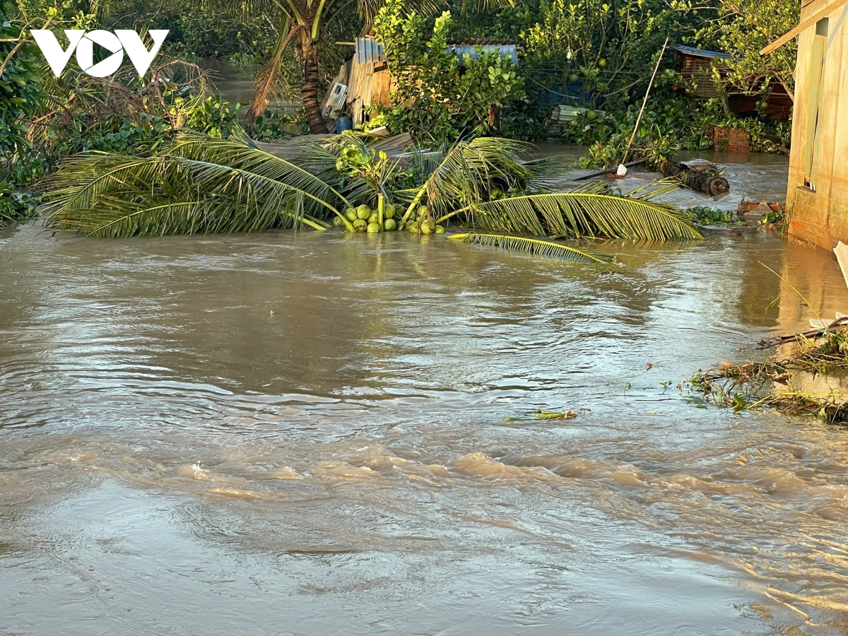 Do nước triều cường đợt rằm tháng 10 âm lịch dâng cao, nước đã tràn qua đê, gây ngập nhiều diện tích vườn cây, ao cá và nhà ở của người dân tại khu vực. Ngay sau sự cố, Sở Nông nghiệp – Môi trường tỉnh Vĩnh Long cùng chính quyền địa phương đã có mặt khảo sát và bàn phương án xử lý tạm thời để ngăn nước triều trong thời gian sớm nhất. Tuy nhiên, dự báo con nước chiều nay có thể tiếp tục tràn vào khu vực này.