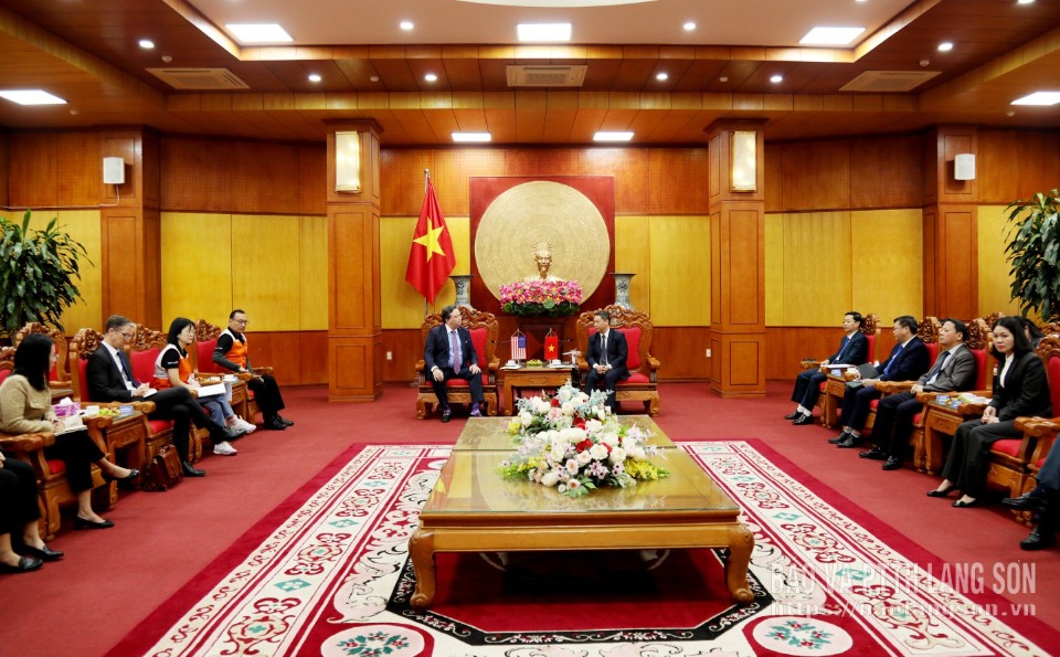 Đồng chí Đoàn Thanh Sơn, Phó Chủ tịch UBND tỉnh Lạng Sơn trao đổi một số nội dung với Ngài Đại sứ tại buổi tiếp đón
