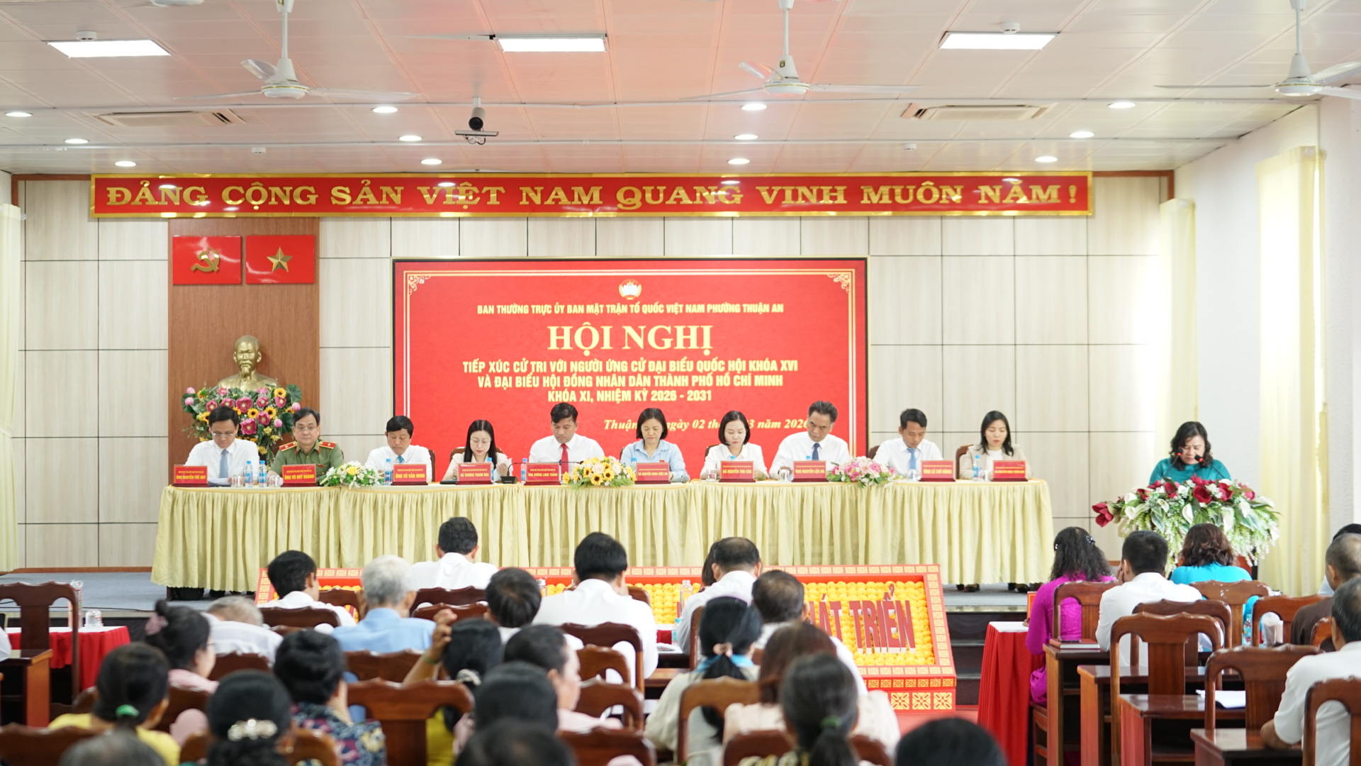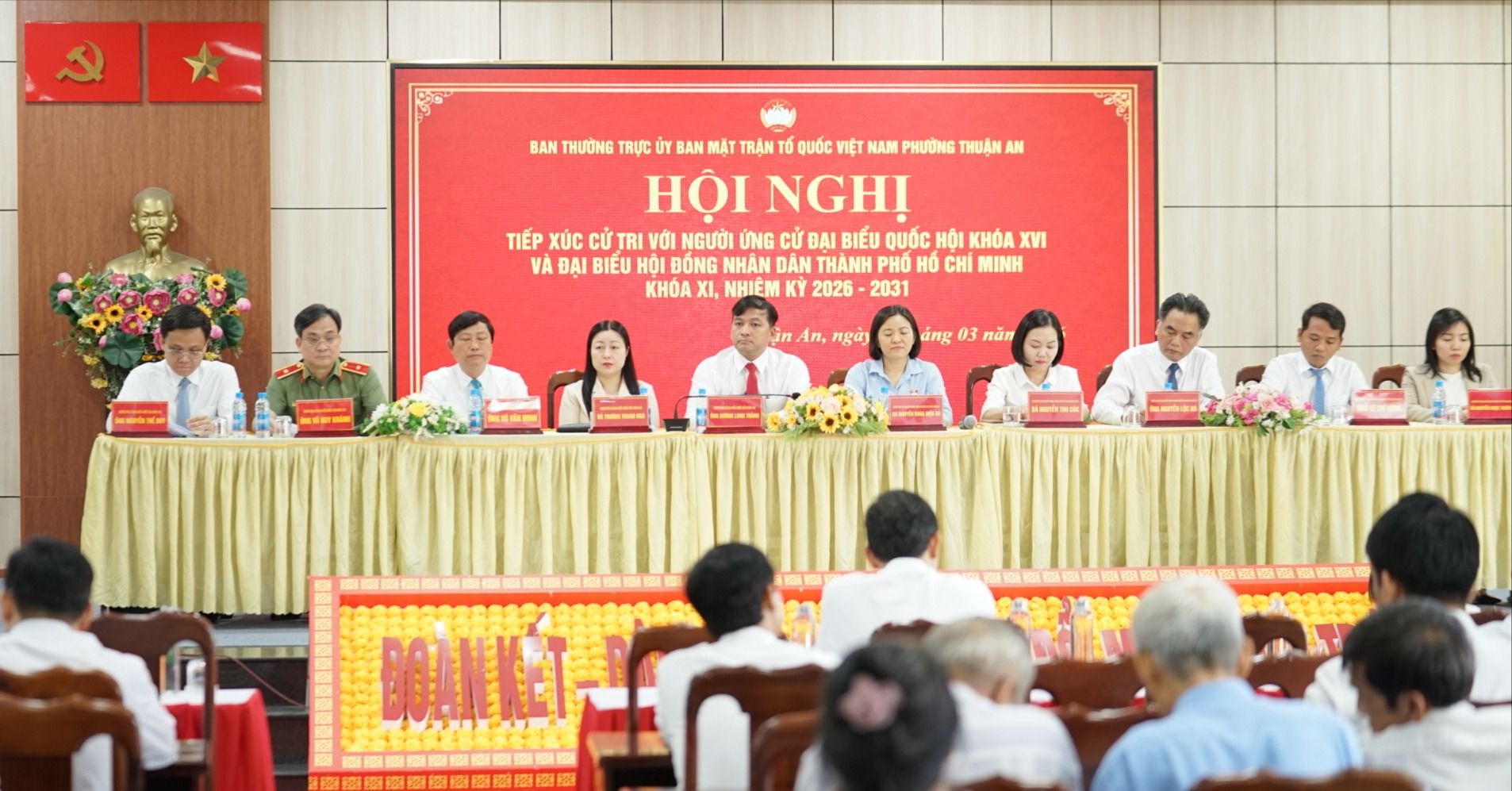 Sáng 2-3, tại UBND phường Thuận An (TPHCM), Ban Thường trực Ủy ban MTTQ Việt Nam phường tổ chức hội nghị tiếp xúc cử tri với ứng cử viên Đại biểu Quốc hội (ĐBQH) khóa XVI và ĐB HĐND TPHCM khóa XI, nhiệm kỳ 2026-2031.
