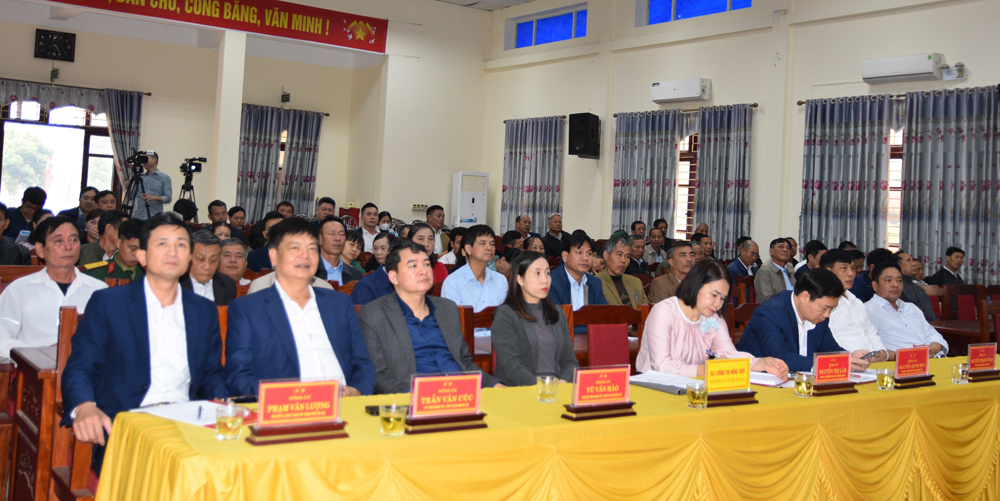 Các đại biểu và cử tri tham gia hội nghị tiếp xúc với những người ứng cử đại biểu HĐND tỉnh tại xã Trung Chính.
