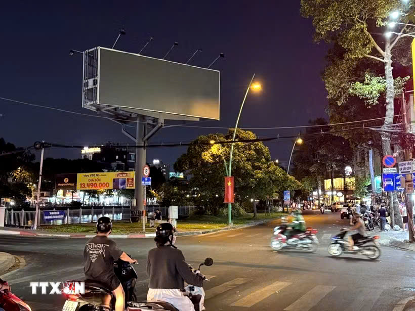 Nhiều bảng hiệu, màn hình LED trên địa bàn TPHCM đã giảm sáng hoặc tắt sau 22 giờ. Ảnh: TTXVN
