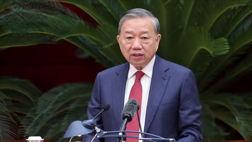 Tổng Bí thư Tô Lâm phát biểu khai mạc Hội nghị Trung ương 14. Ảnh: VGP.