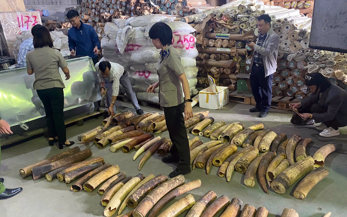 Tại buổi kiểm tra, lực lượng chức năng thu giữ 159 khúc ngà voi (tổng trọng lượng 615 kg) được trà trộn với sừng bò châu Phi.