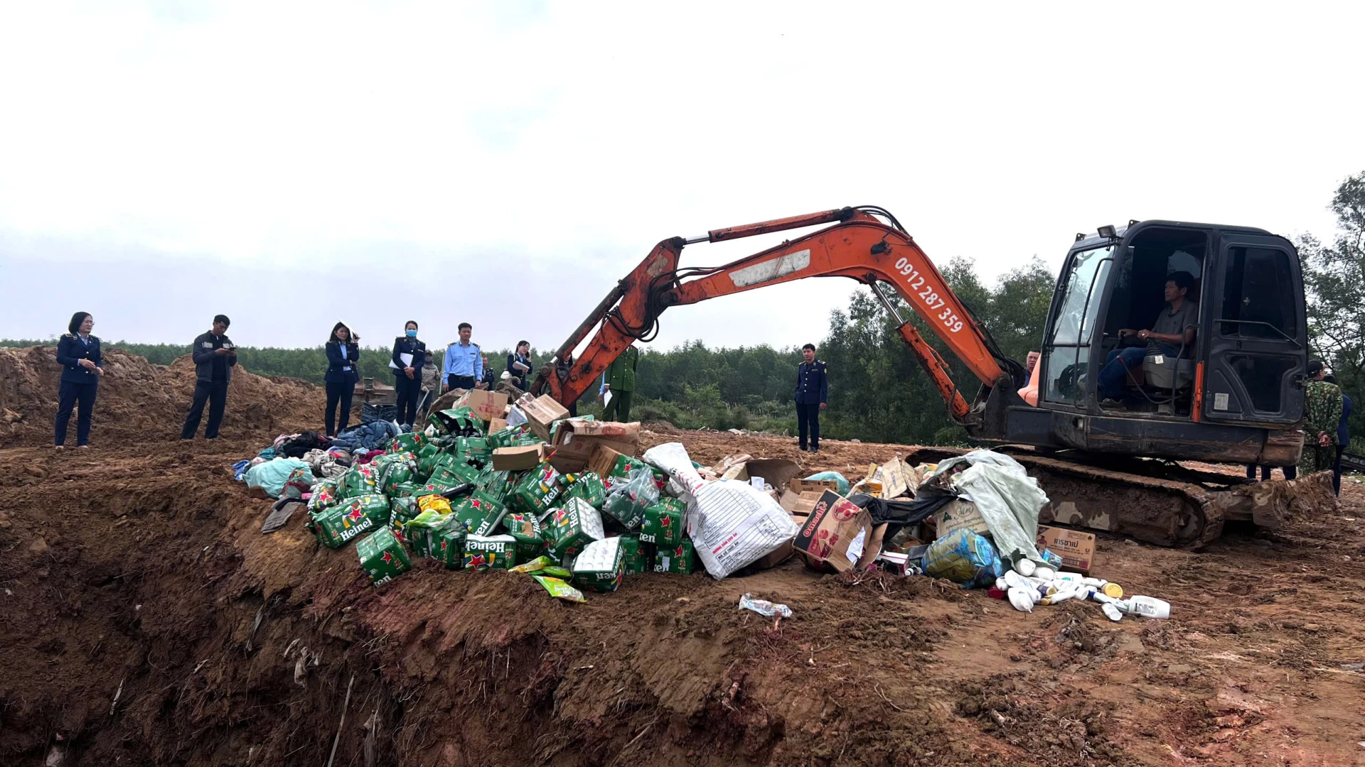 Sáng cùng ngày, toàn bộ số hàng hóa vi phạm hành chính bị tịch thu đã được tiêu hủy tại bãi rác chung Đồng Hới-Bố Trạch (xã Nam Trạch). Quá trình tiêu hủy được các thành viên hội đồng giám sát chặt chẽ, bảo đảm thực hiện đúng phương án, bảo vệ an toàn tài sản tiêu hủy, tránh tình trạng thất thoát, mất tài sản trong quá trình tiêu hủy.
